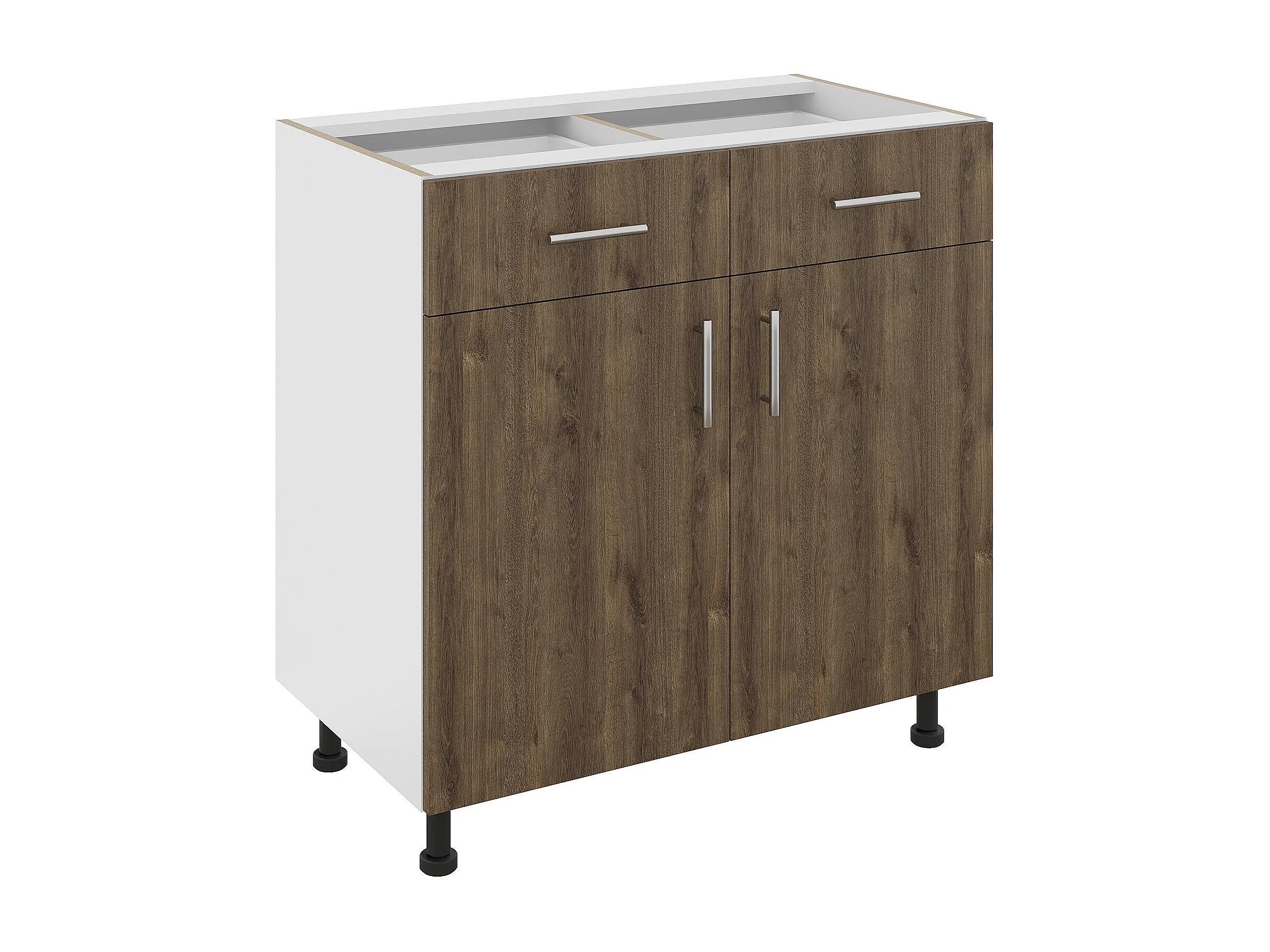 Mobile base haaus Karo, 2 cassetti, 2 ante, Rovere Sonoma Scuro/Bianco, 80 x 50 x 80 cm