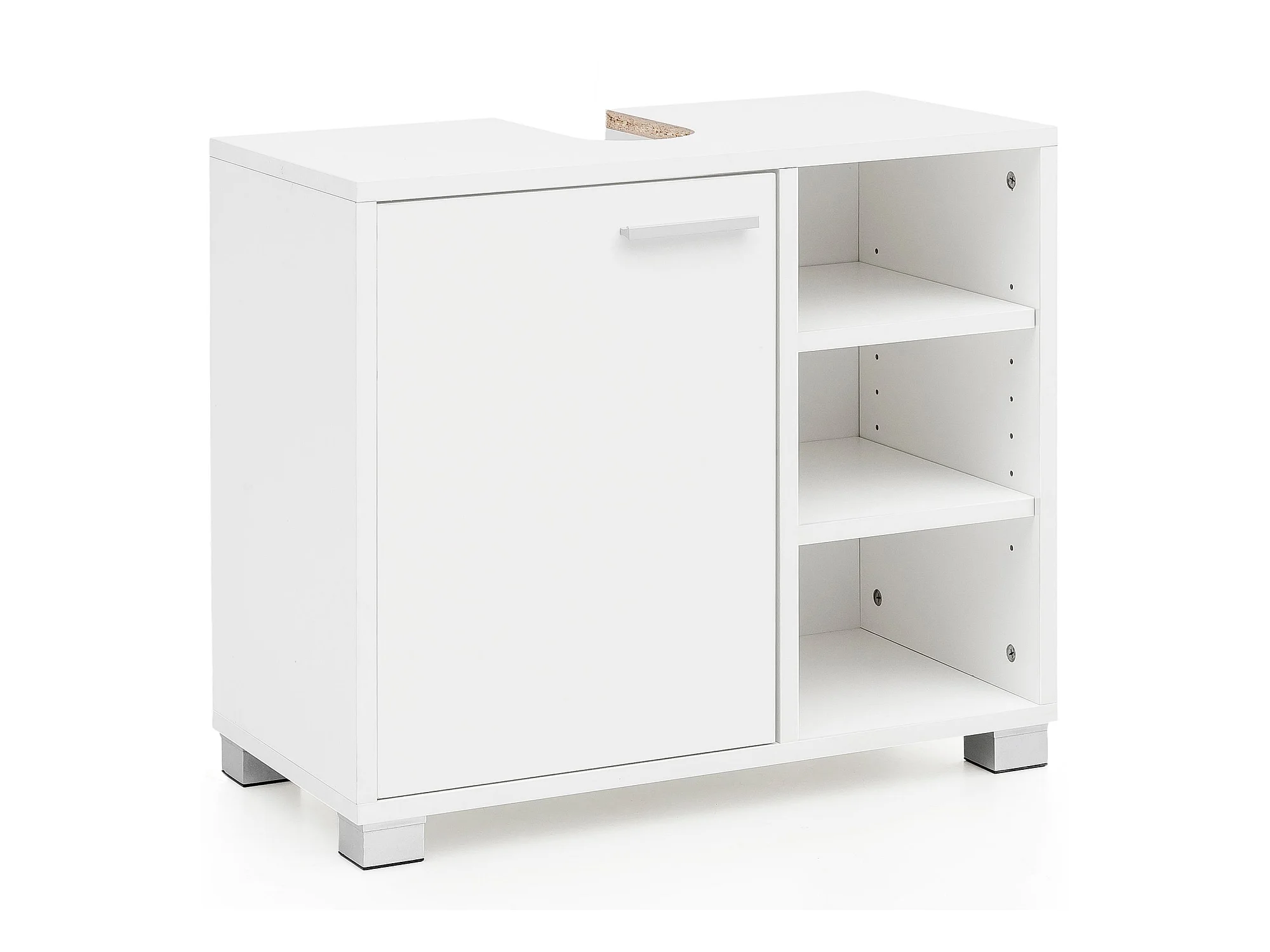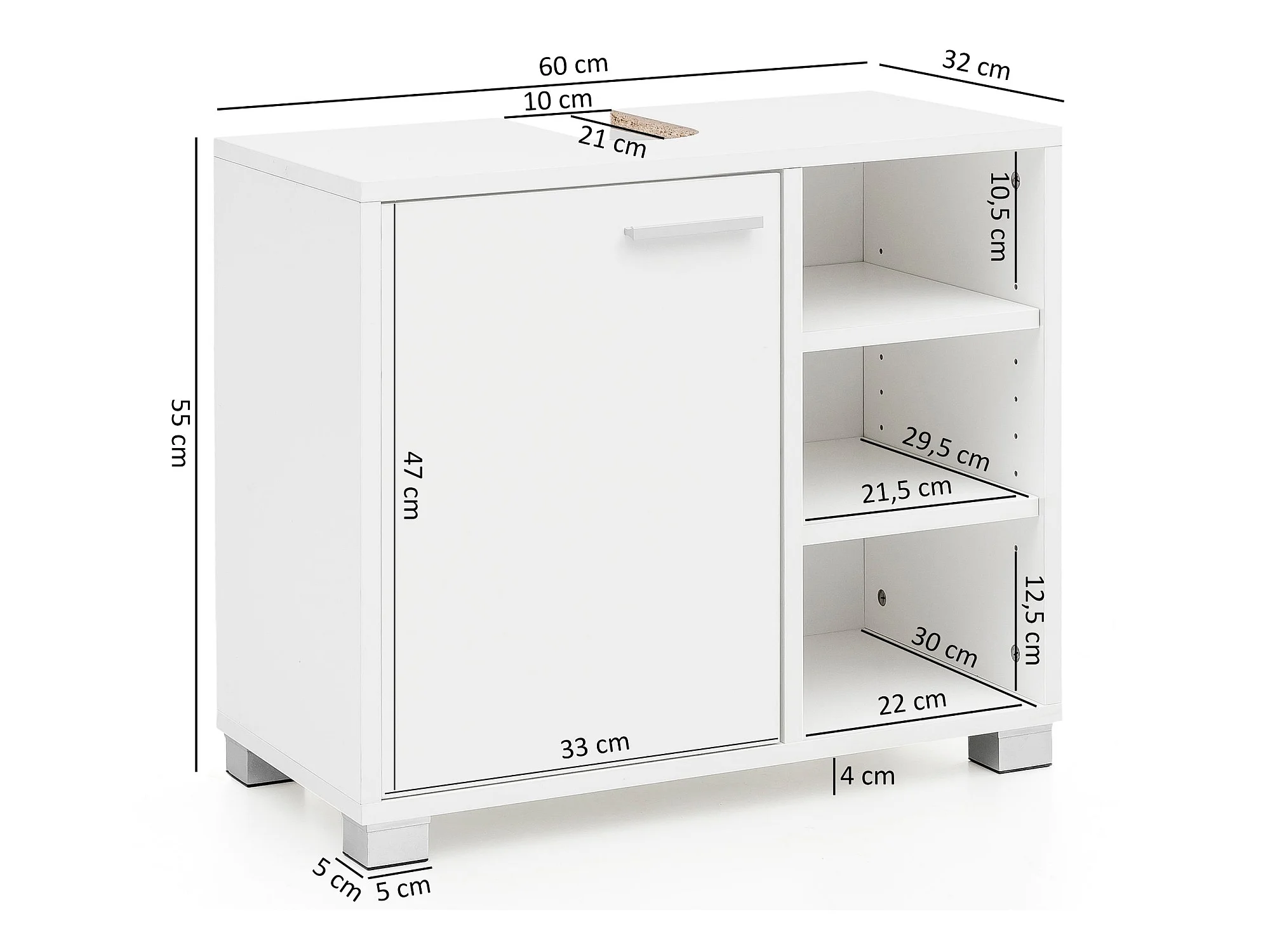 Mobile Base Lavabo 60x55x32 cm Bianco con 1 Ante e 3 Scomparti Aperti