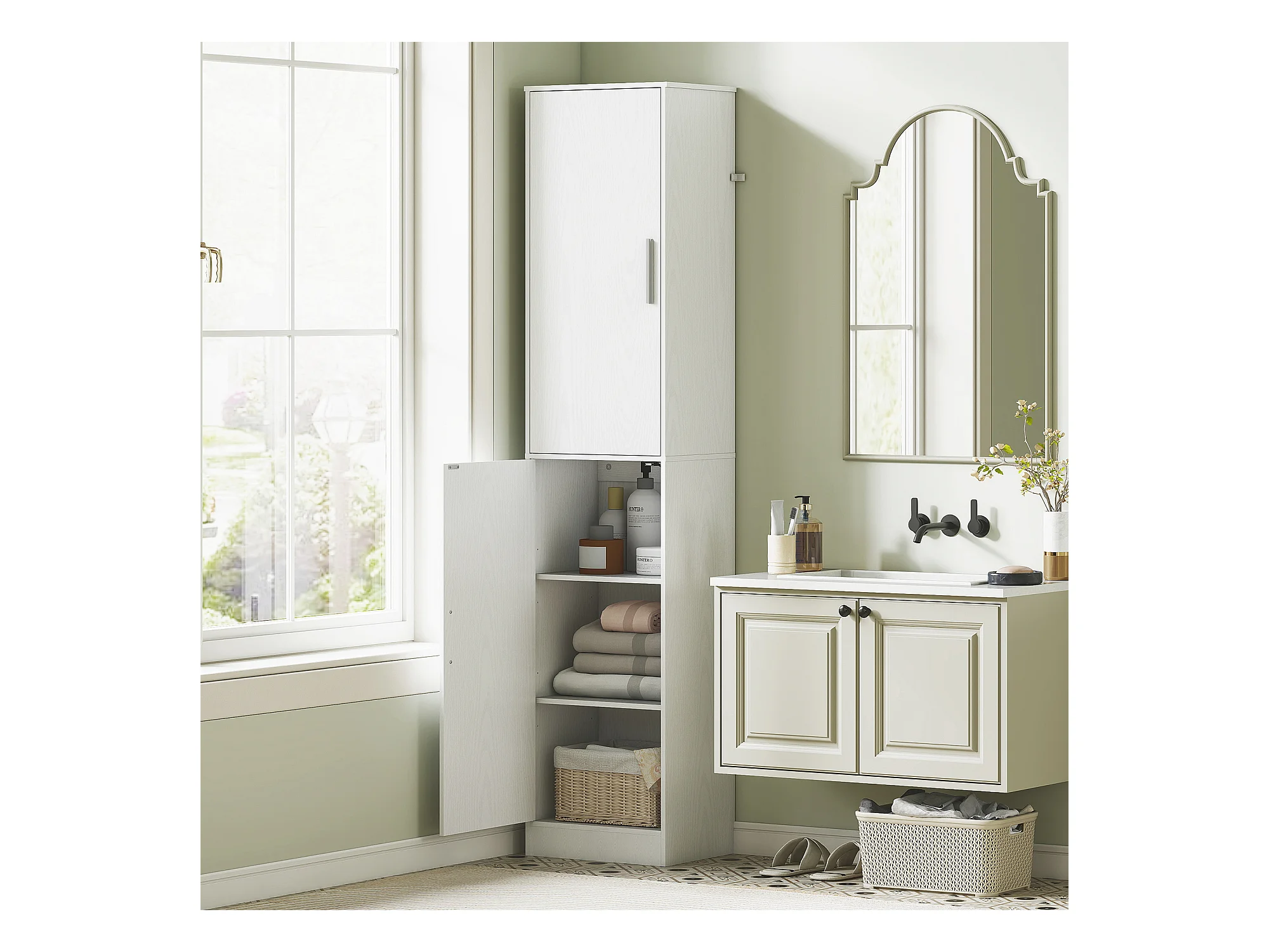 Colonna Bagno con cassetto, 2 armadietti e 4 ripiani aperti bianco