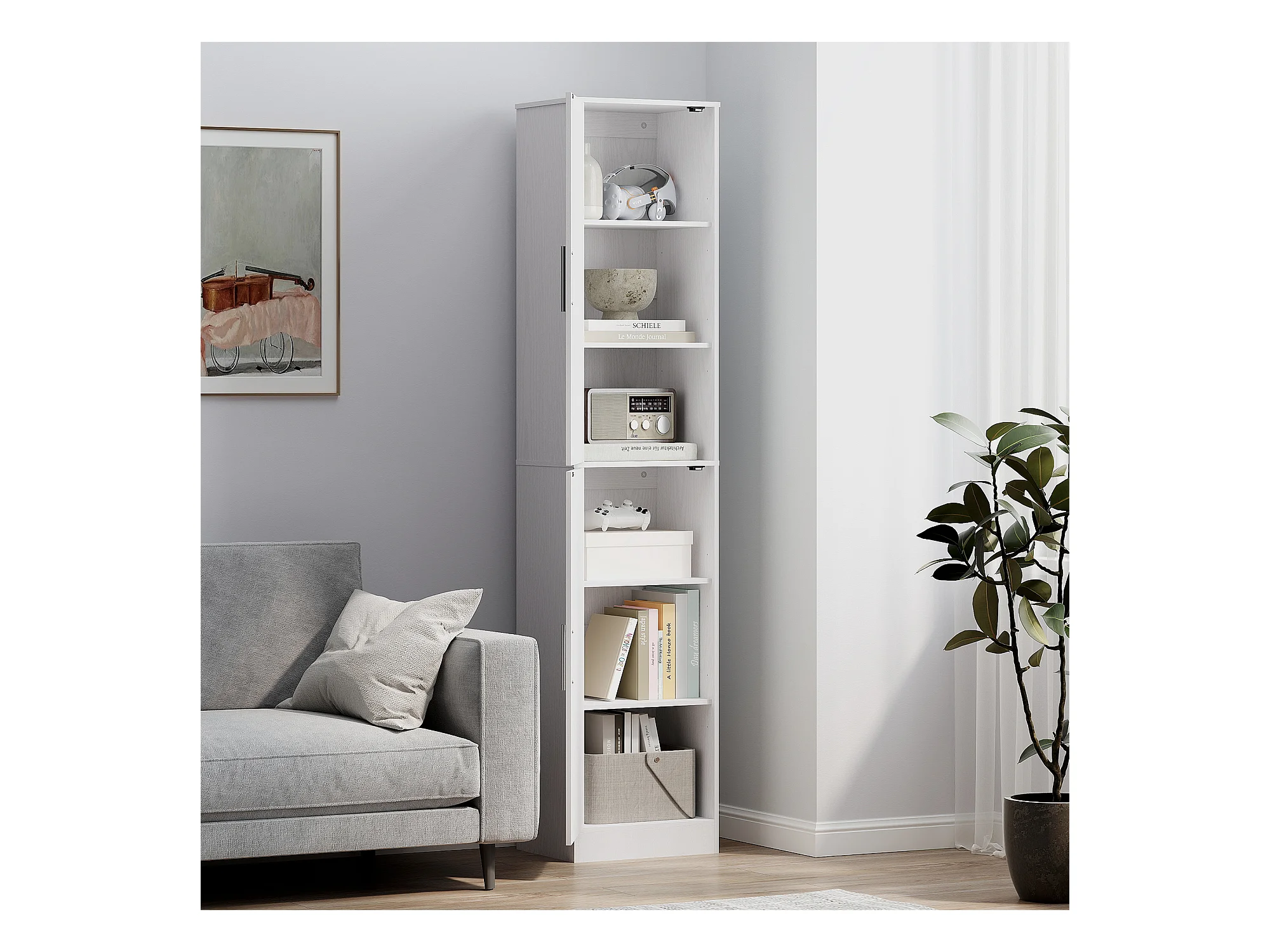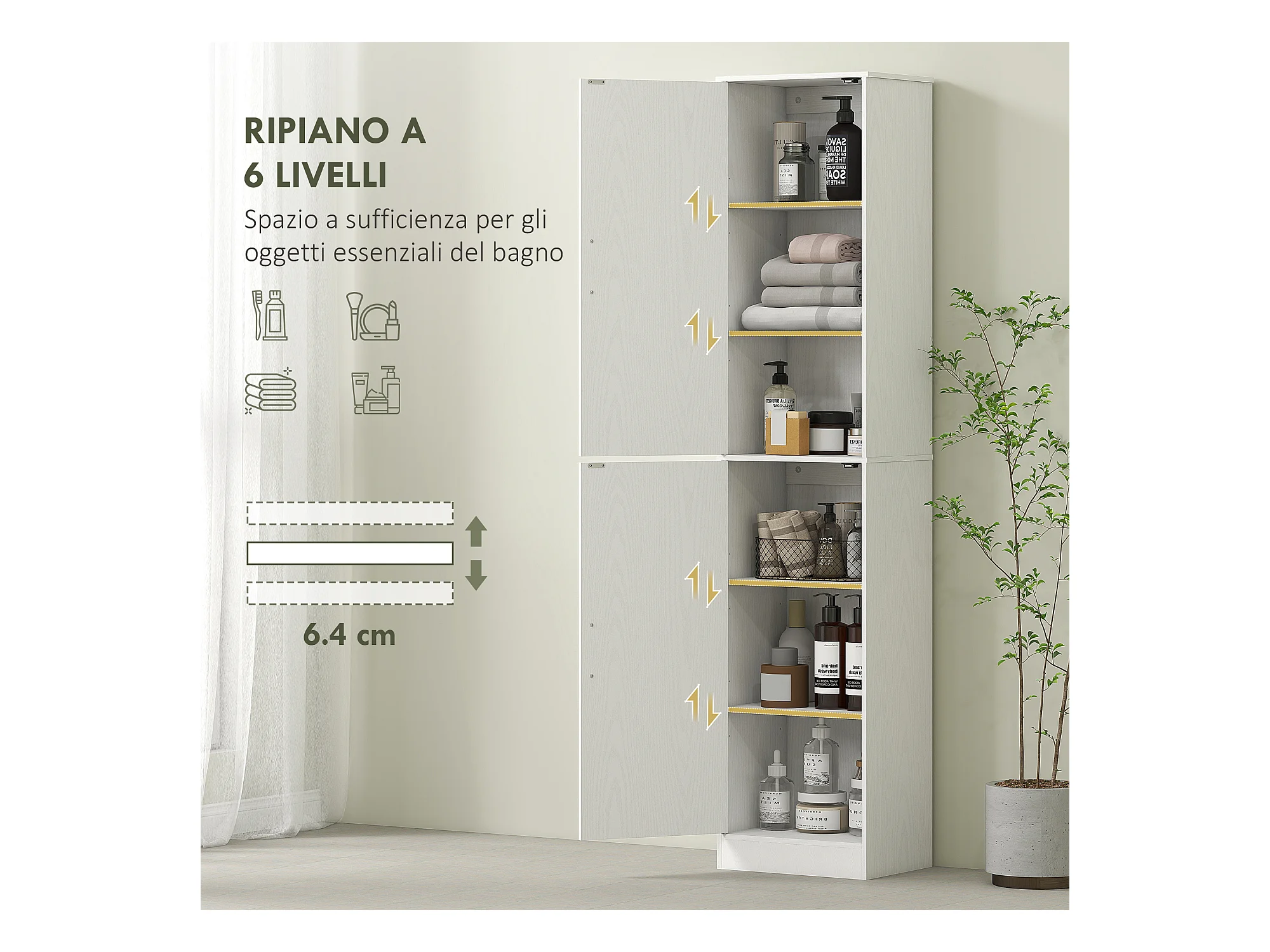 Mobile colonna bagno a 2 armadietti con 6 ripiani regolabili bianco