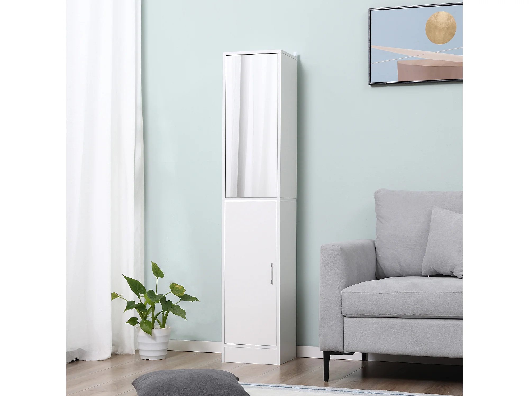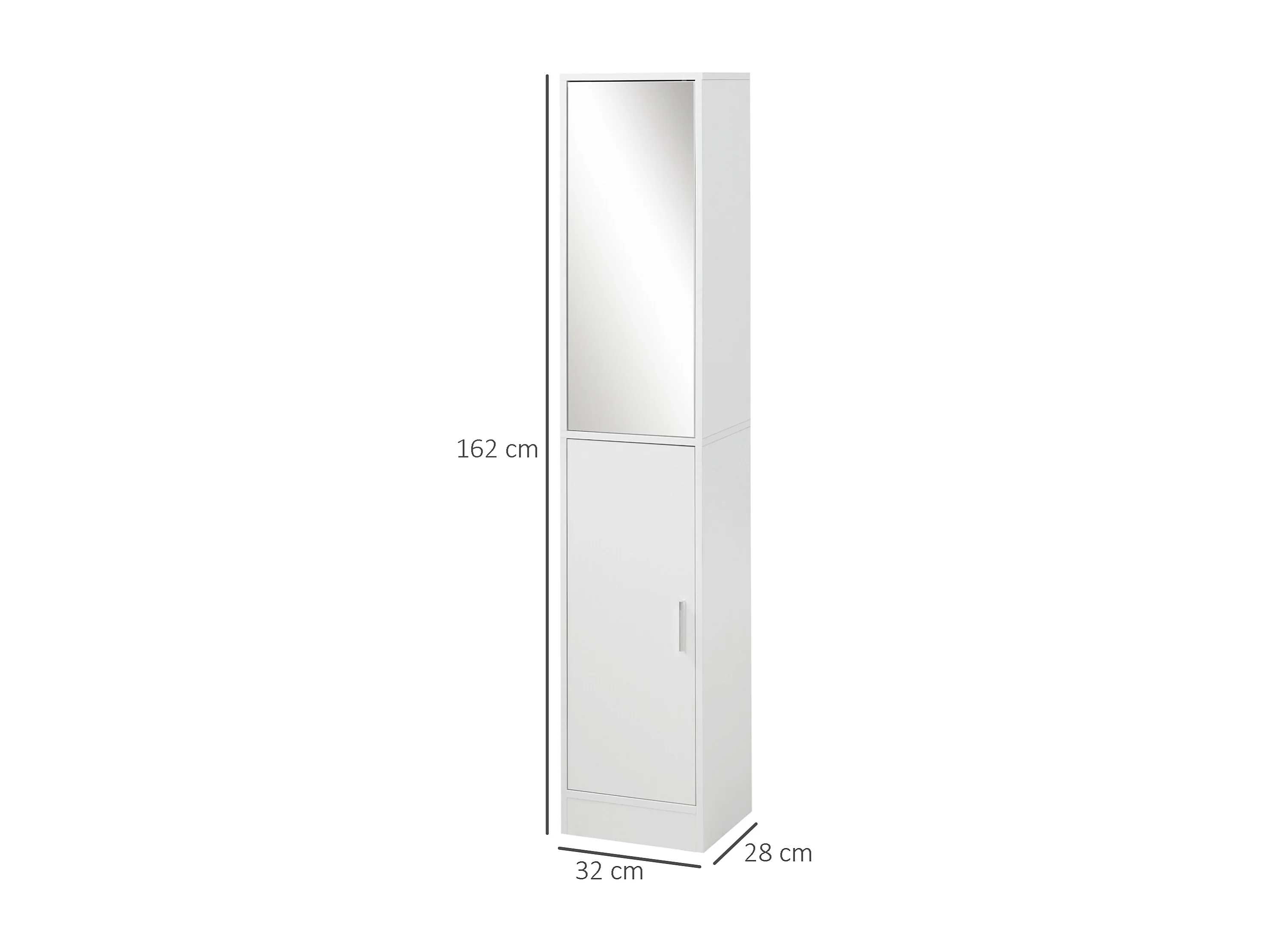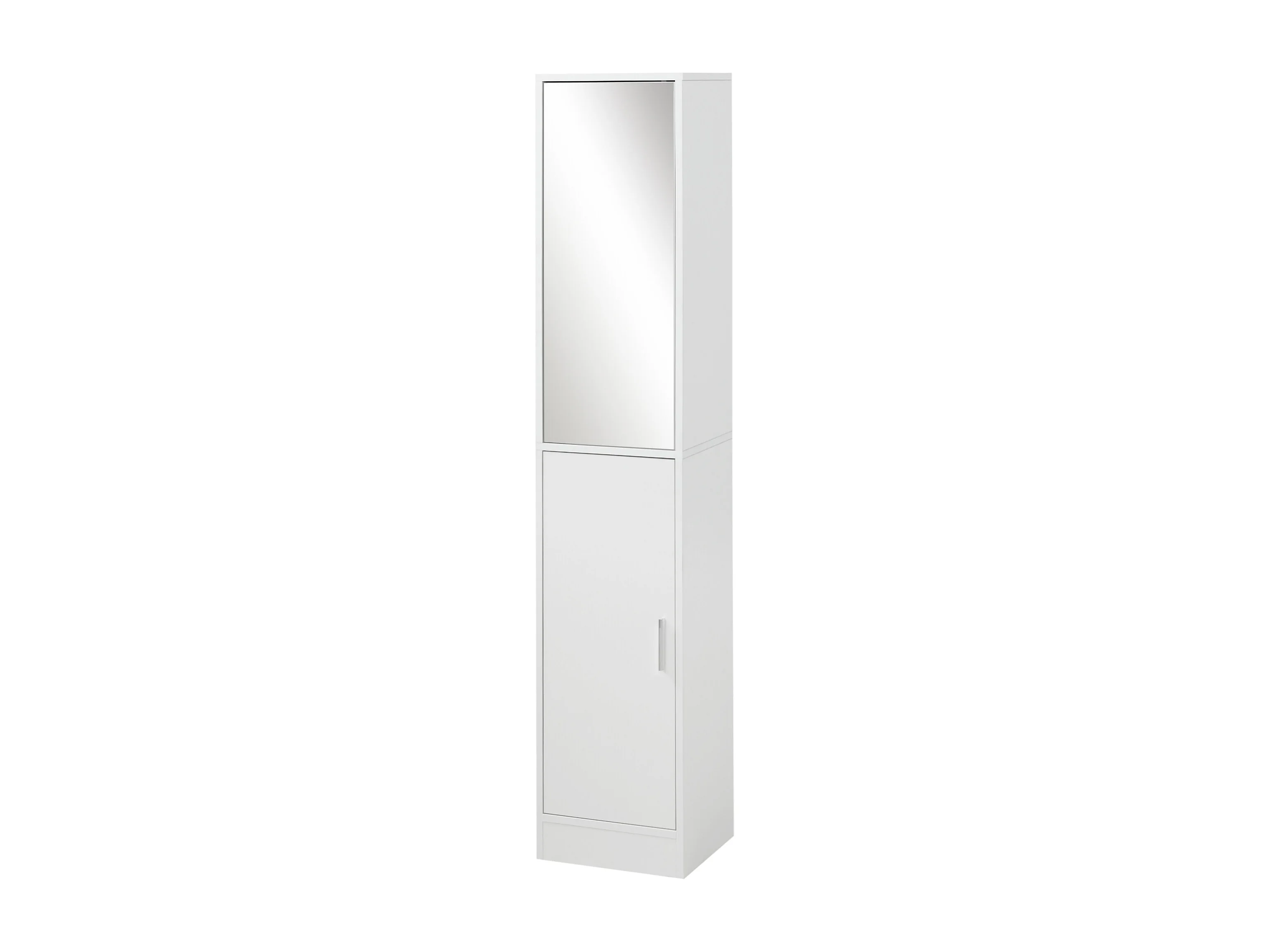 Mobile colonna bagno in legno a 5 ripiani con anta a specchio bianco