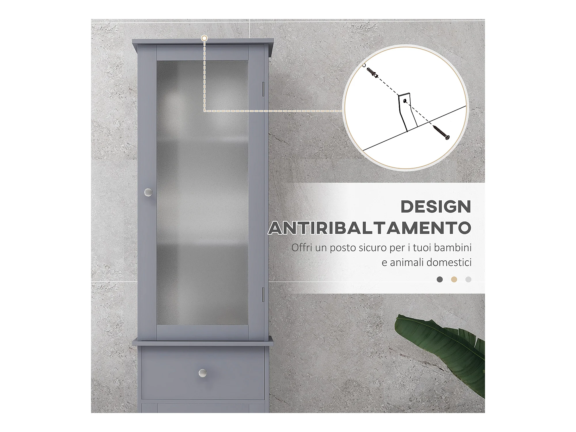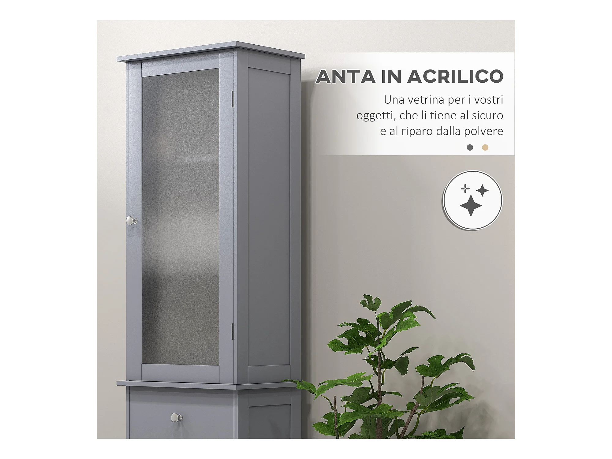 Mobile colonna bagno salvaspazio 40x27x171.5cm in mdf grigio