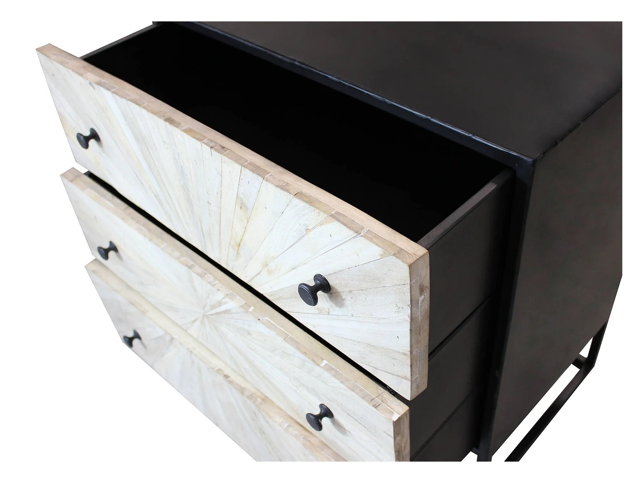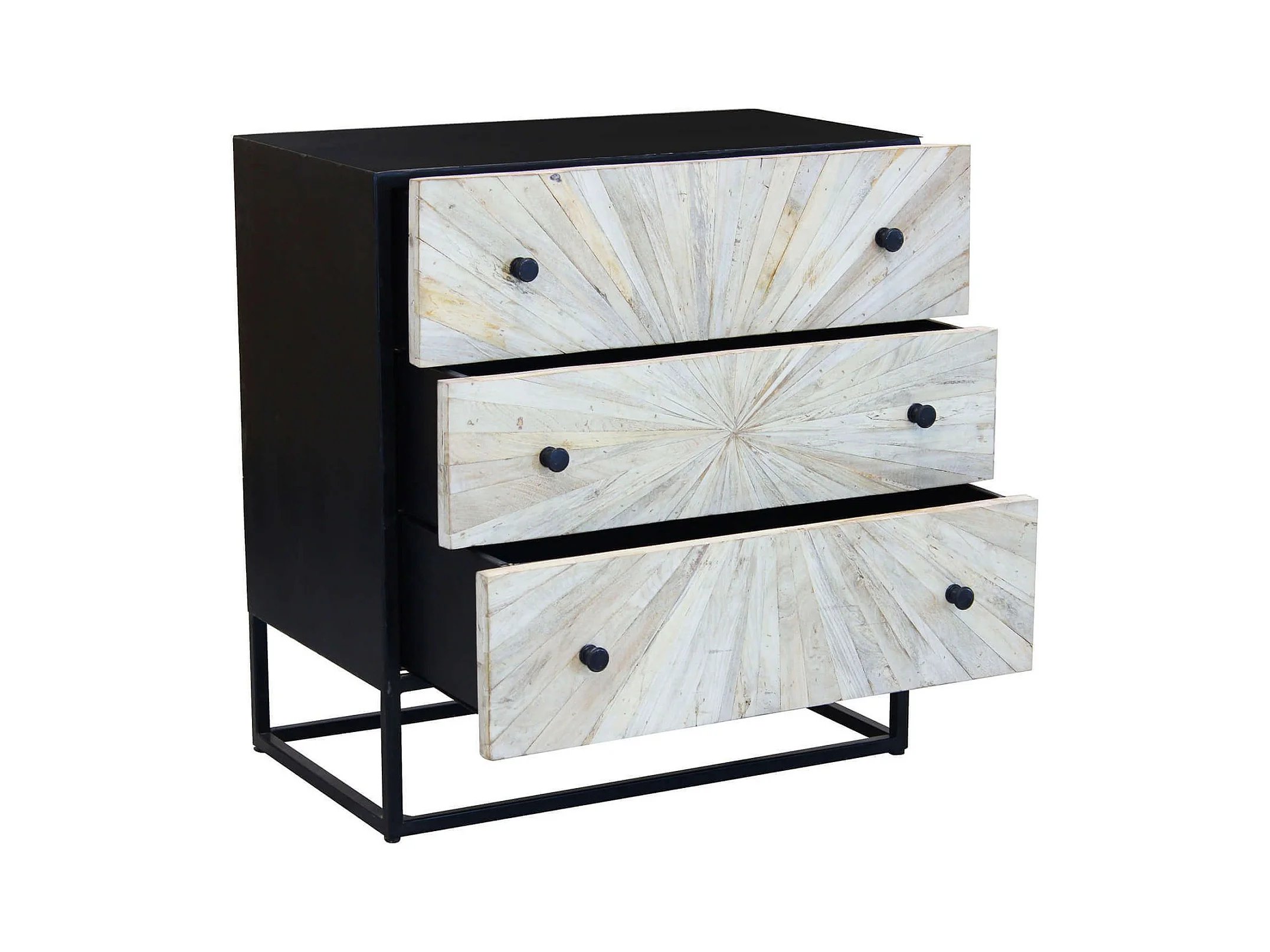 MilaniHome.it - Mobile con decoro naturale con 3 cassetti in legno di mango con struttura in ferro cm 75x45x81 hdi coloreMarrone