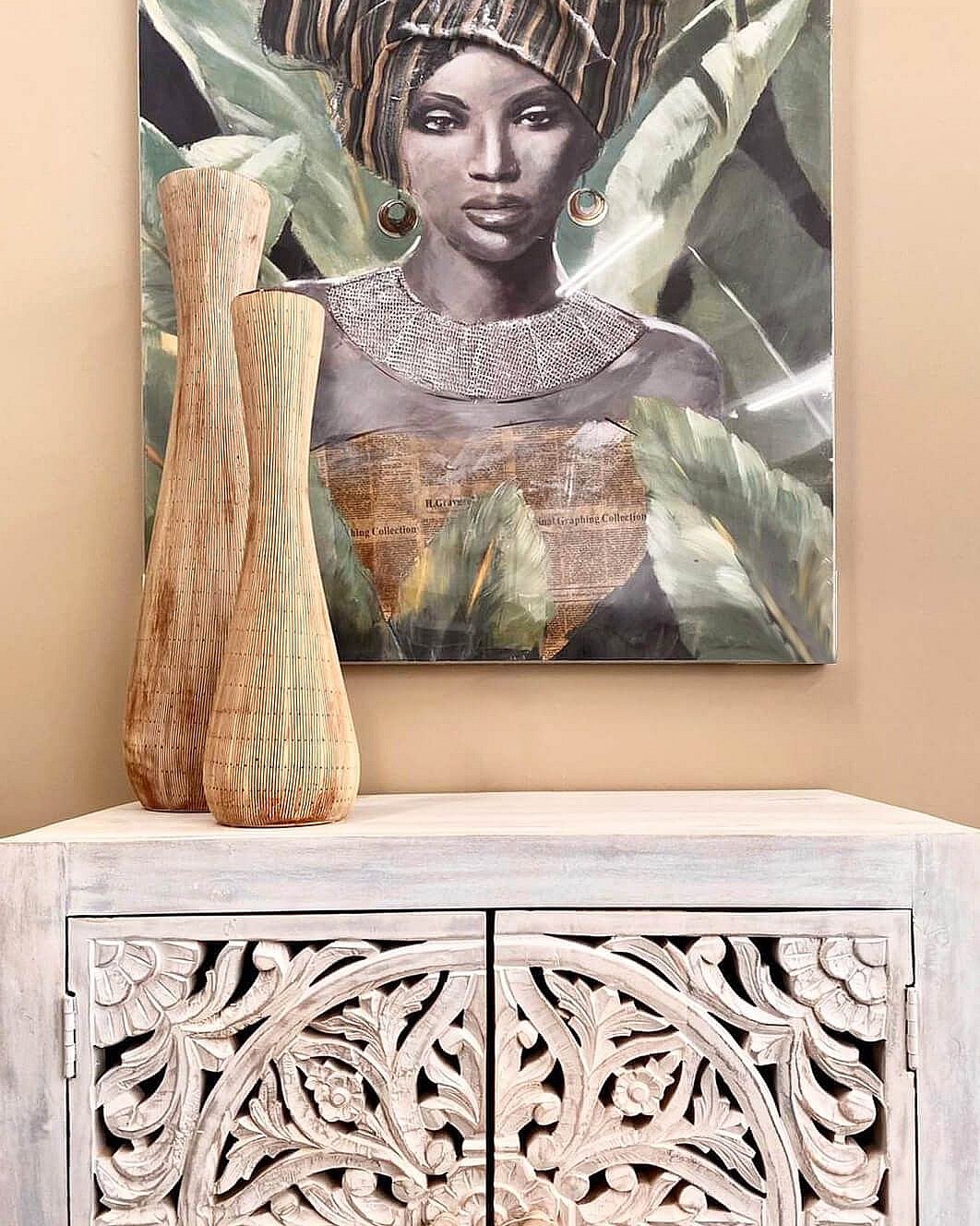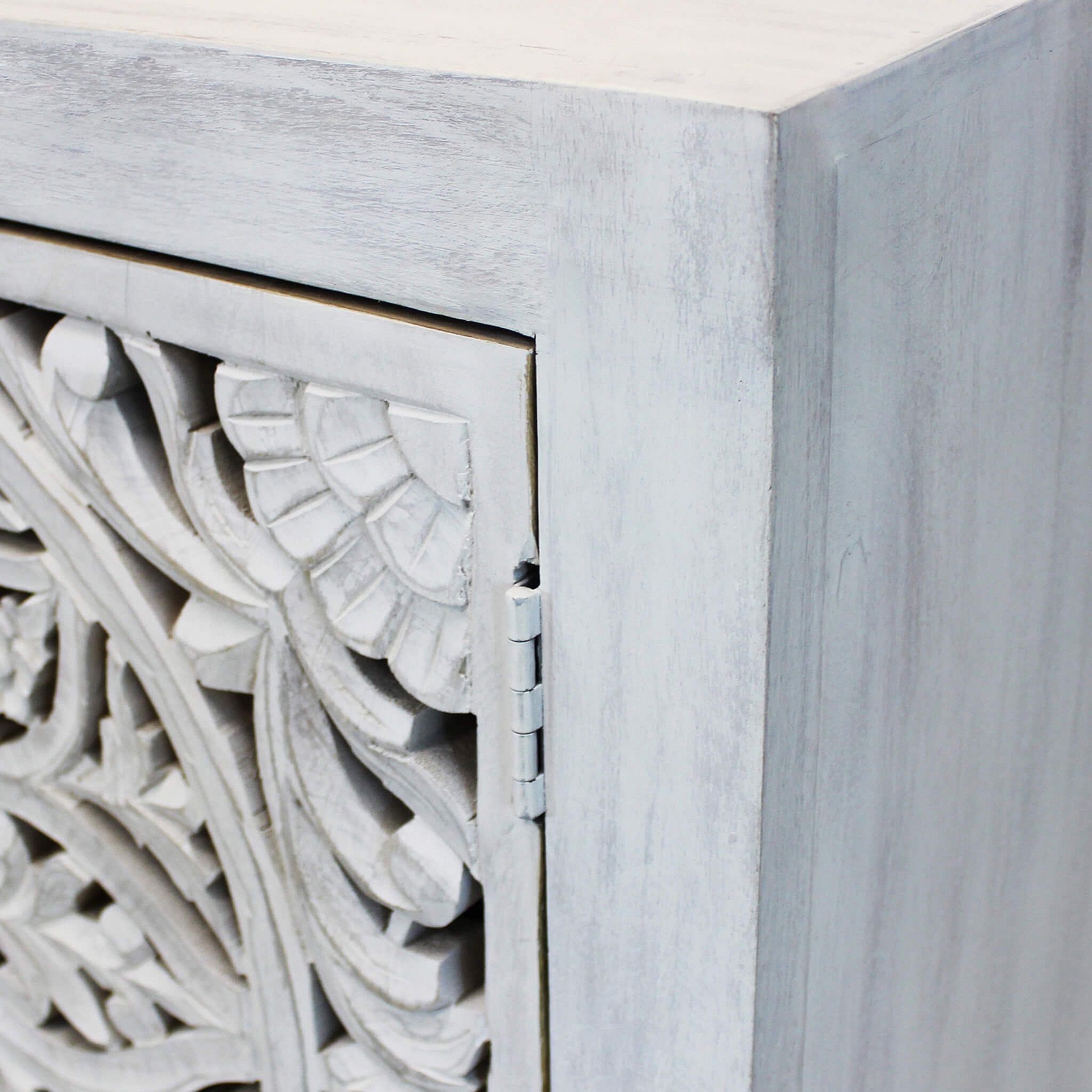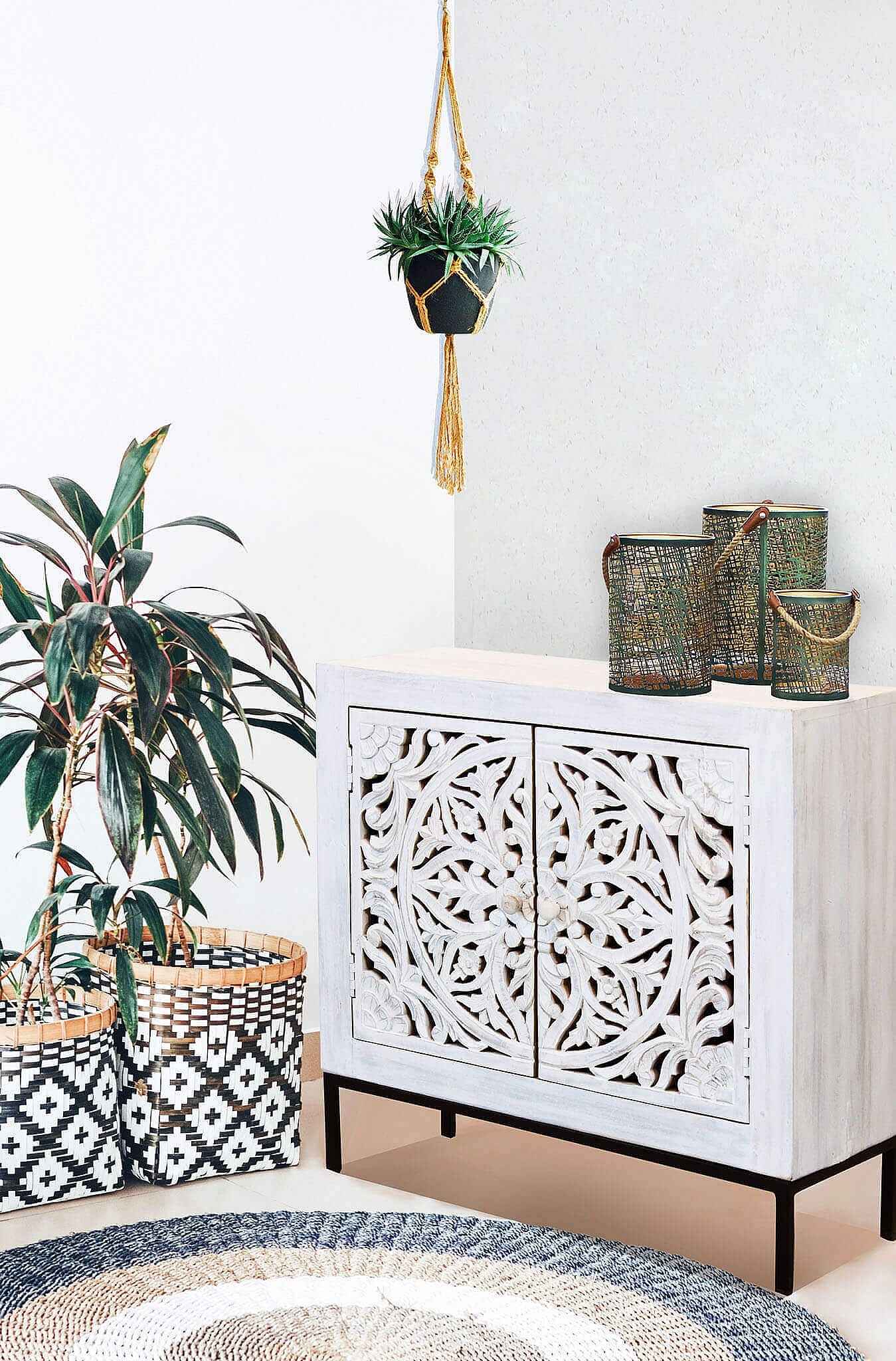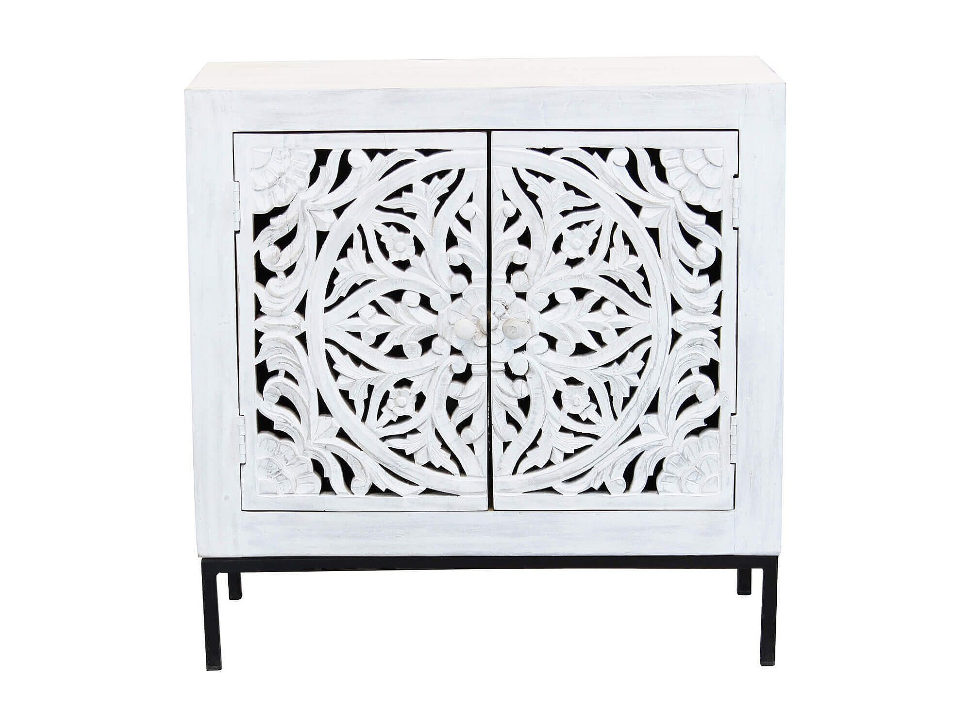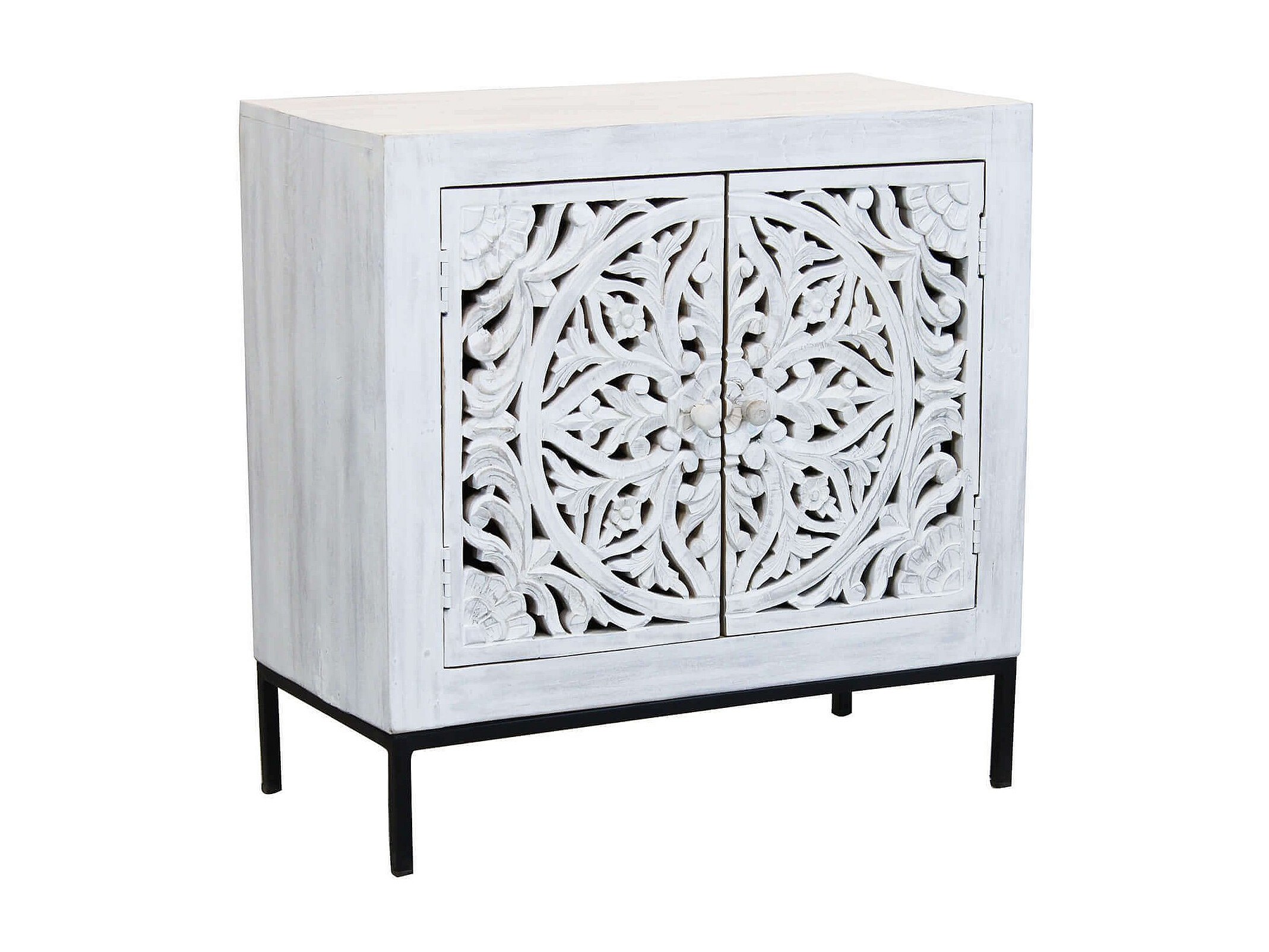 MilaniHome.it - Mobile con decoro sbiancato con 2 ante in legno di mango con struttura in ferro cm 80x40x80 hdi coloreMarrone