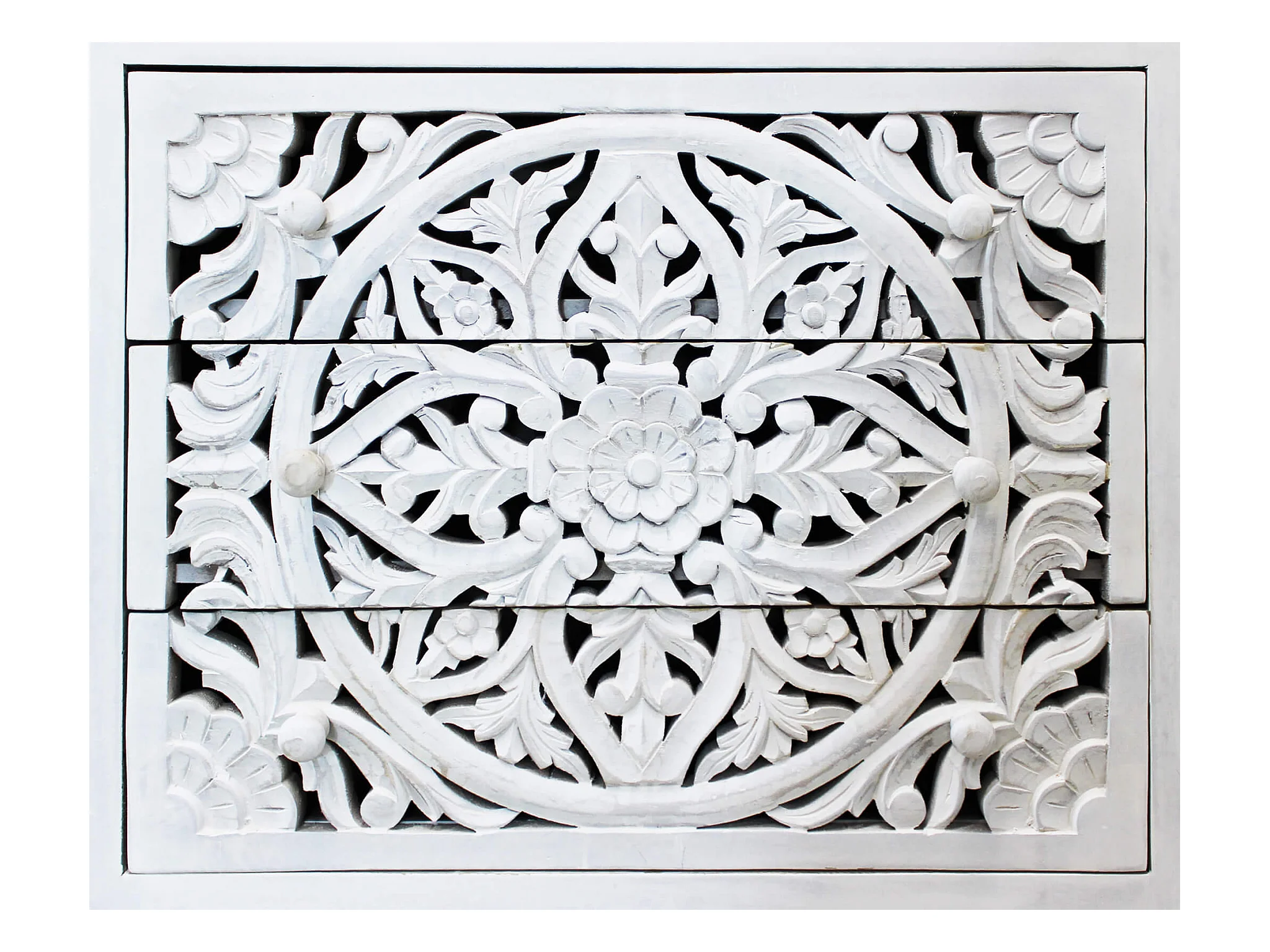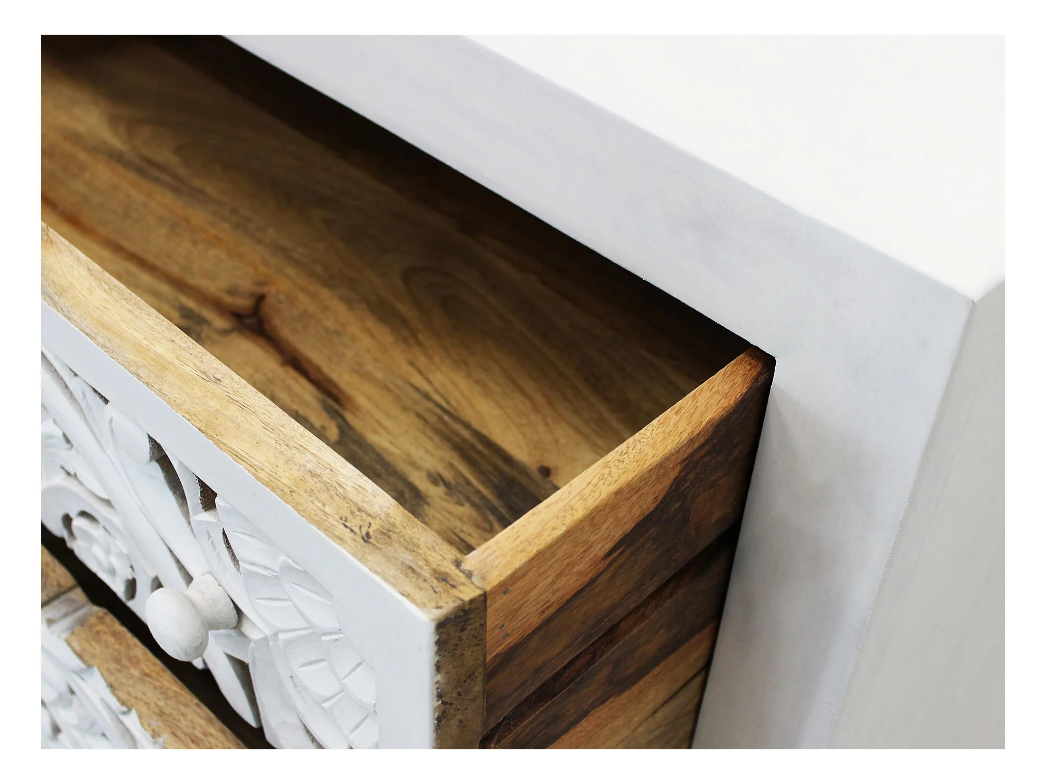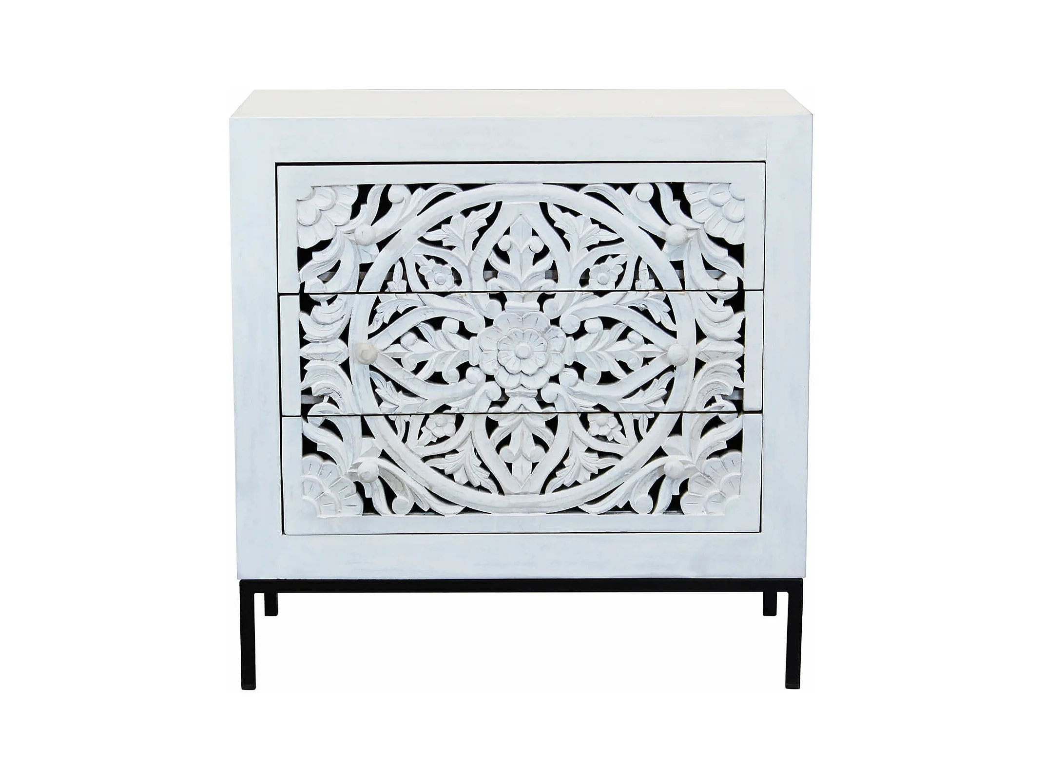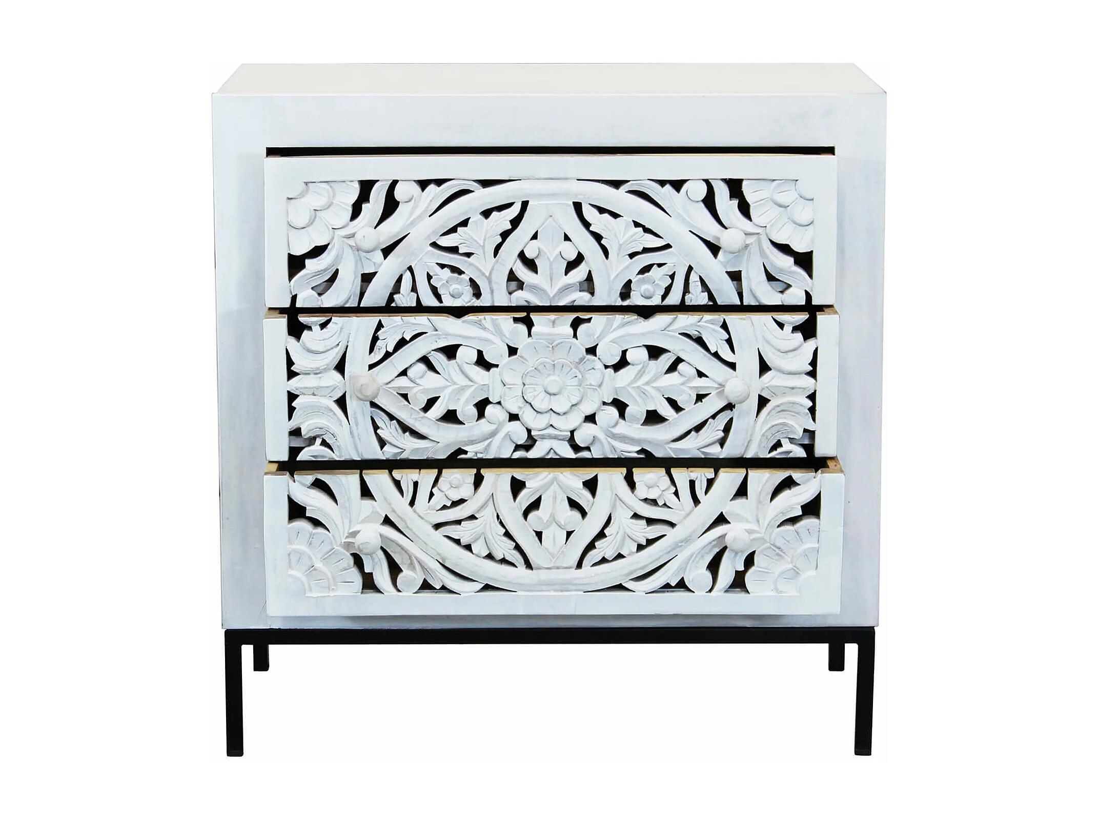 MilaniHome.it - Mobile con decoro sbiancato con 3 cassetti in legno di mango con struttura in ferro cm 80x40x80 hdi coloreMarrone