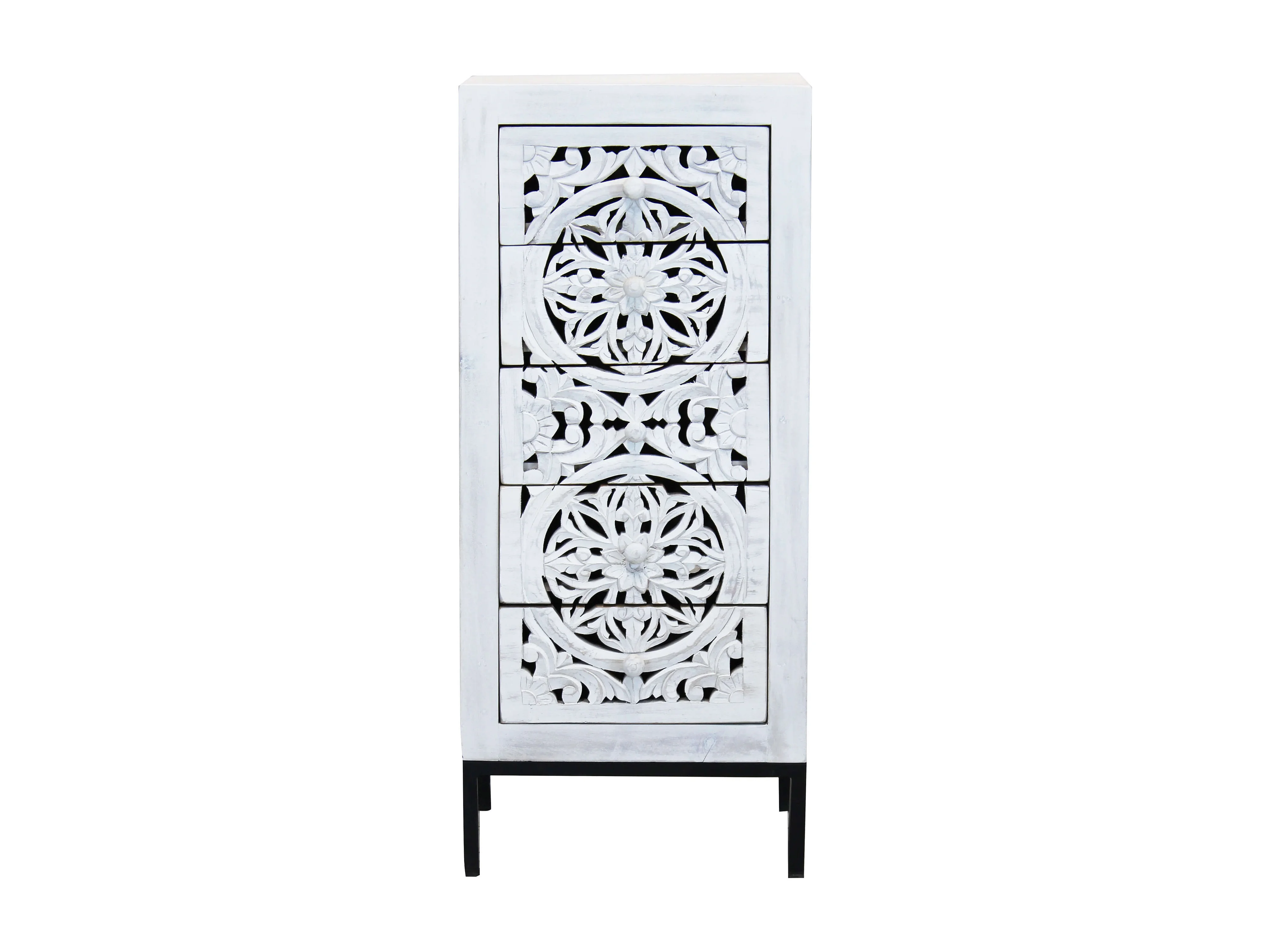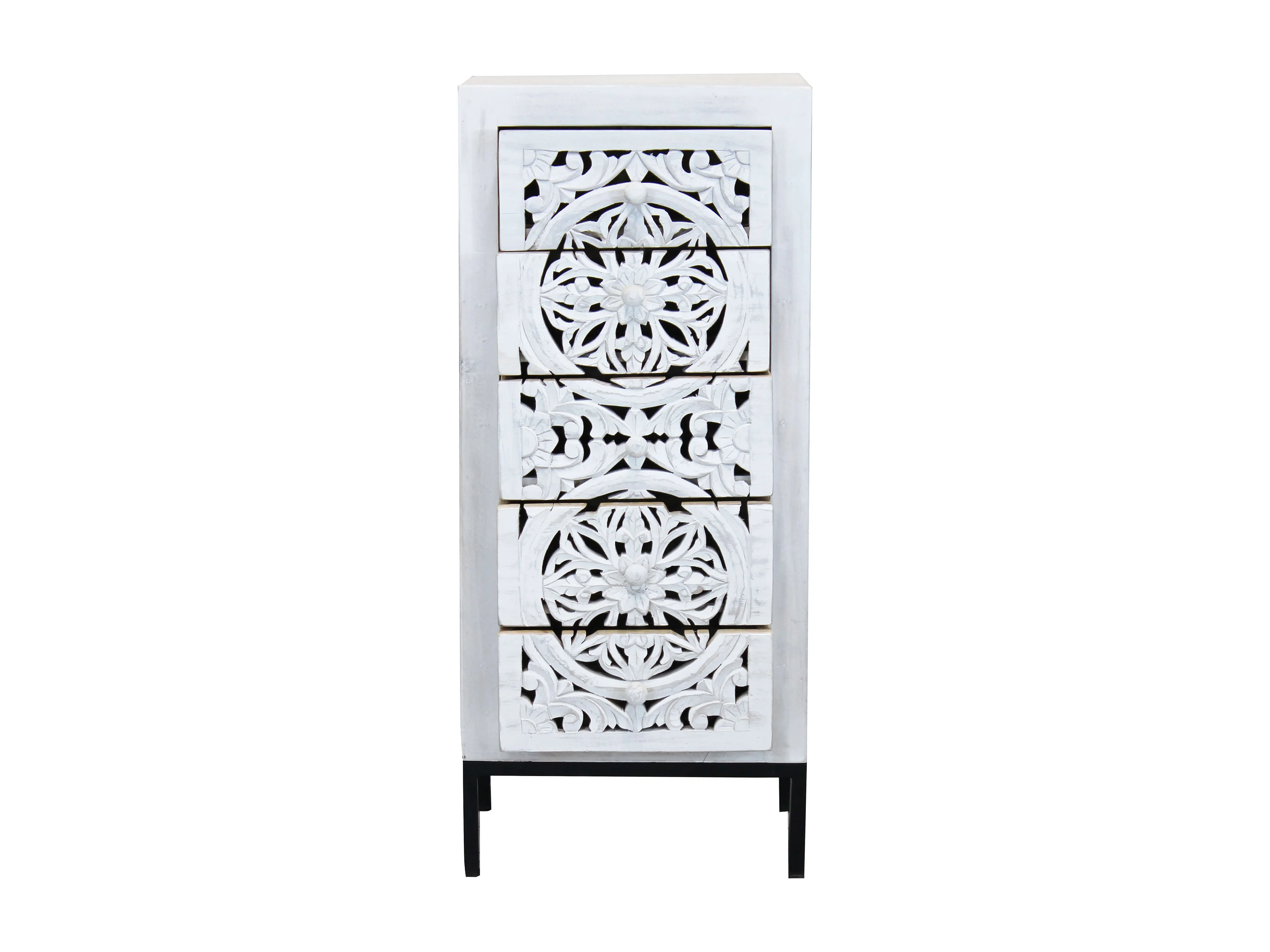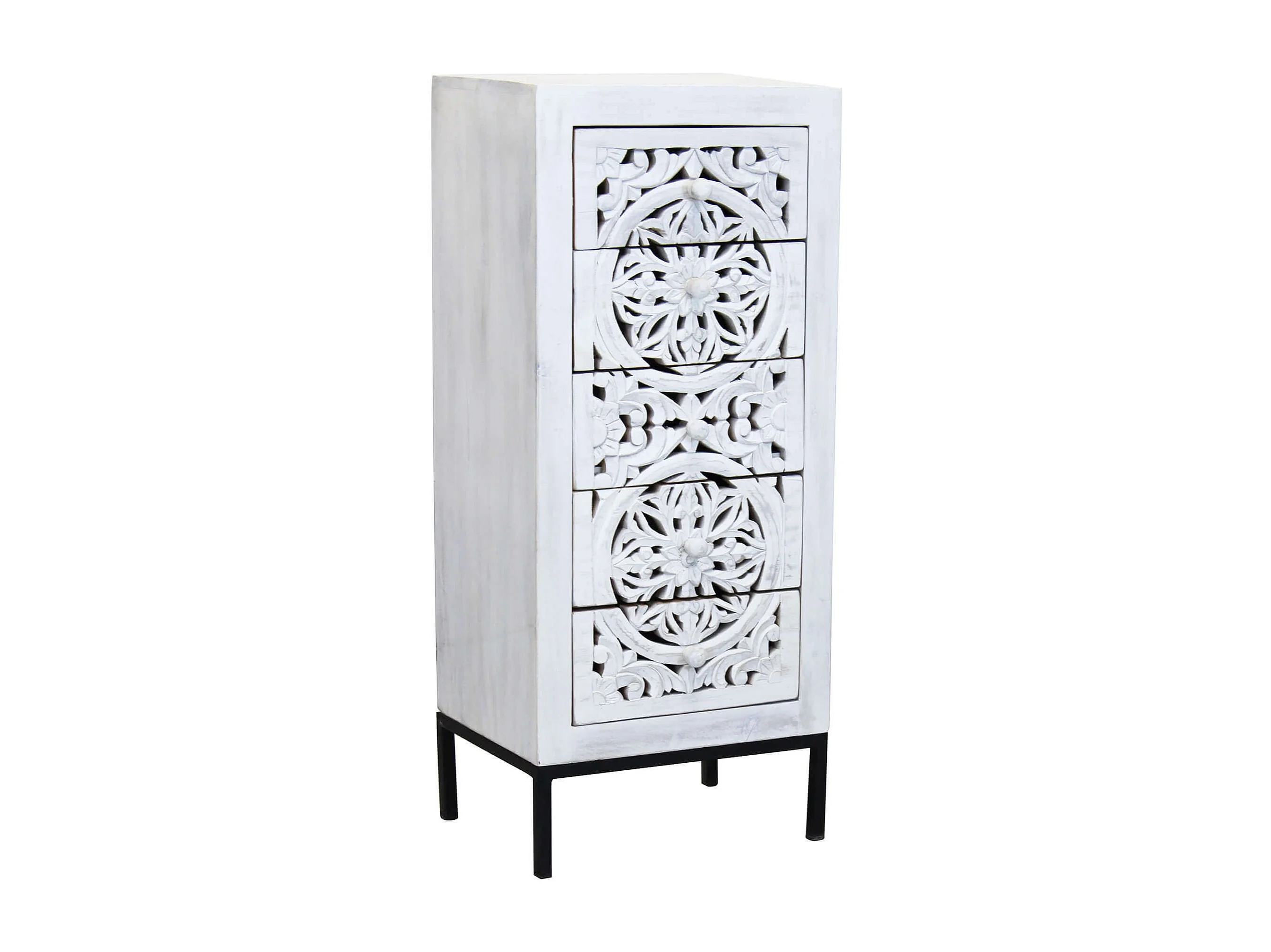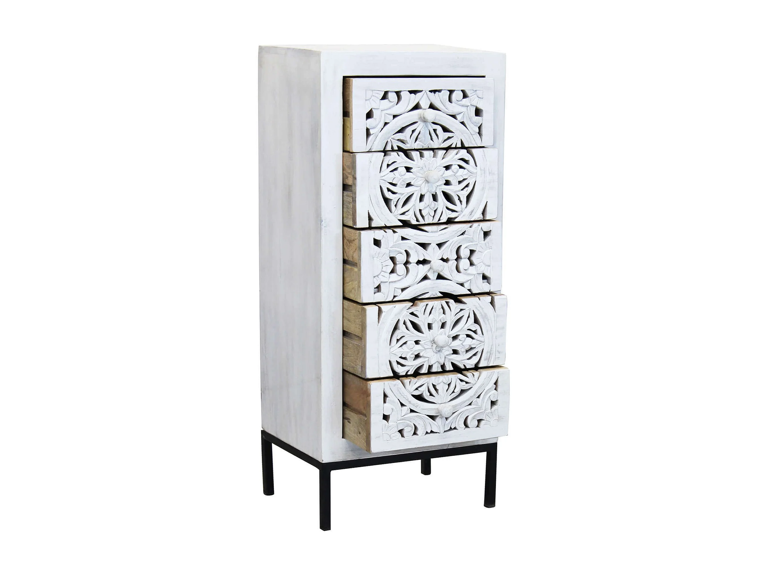 MilaniHome.it - Mobile con decoro sbiancato con 5 cassetti in legno di mango con struttura in ferro cm 45x35x105 hdi coloreMarrone