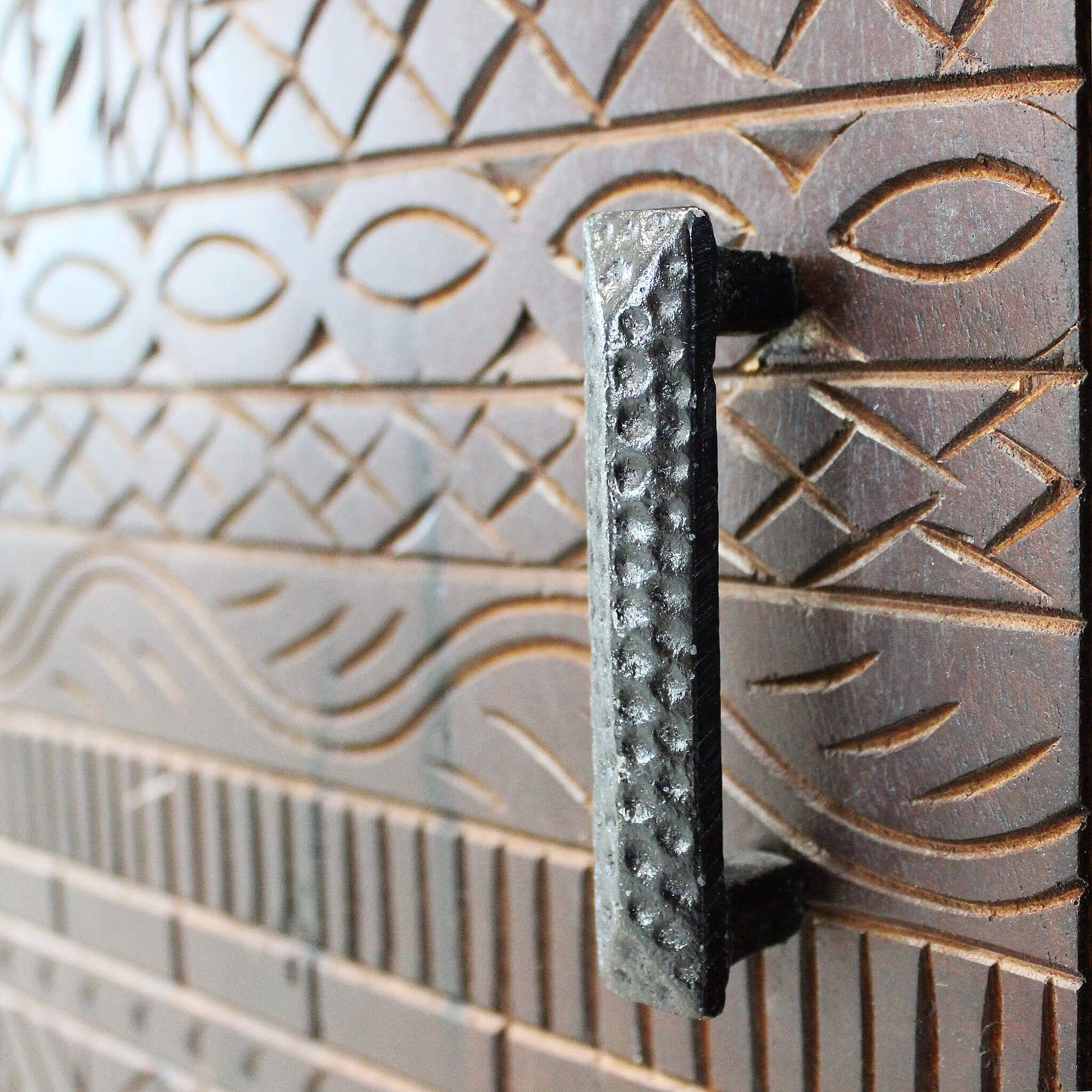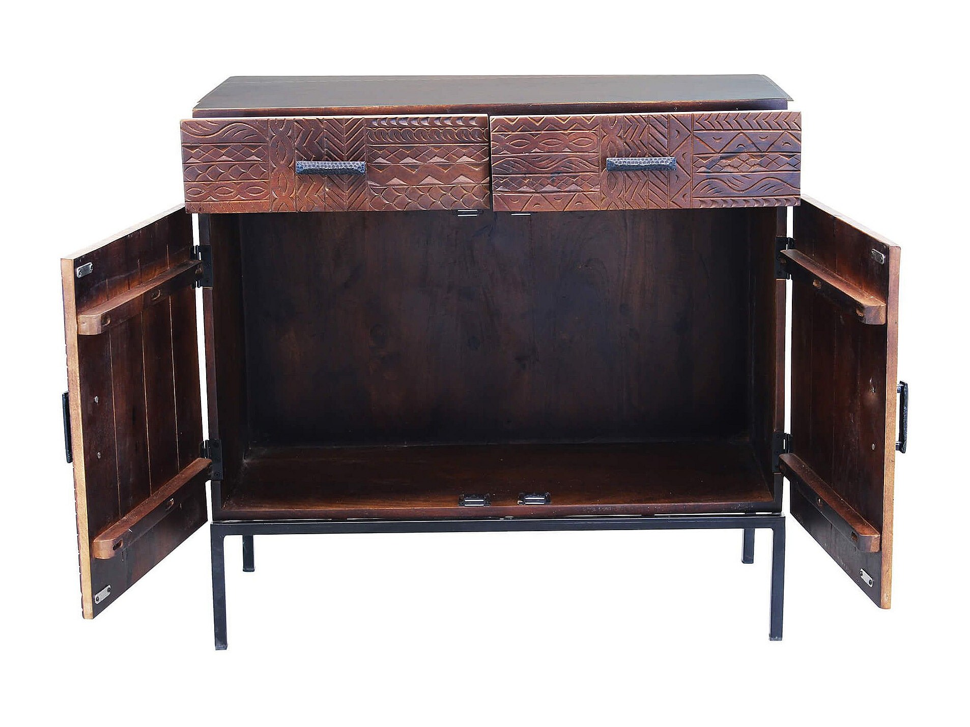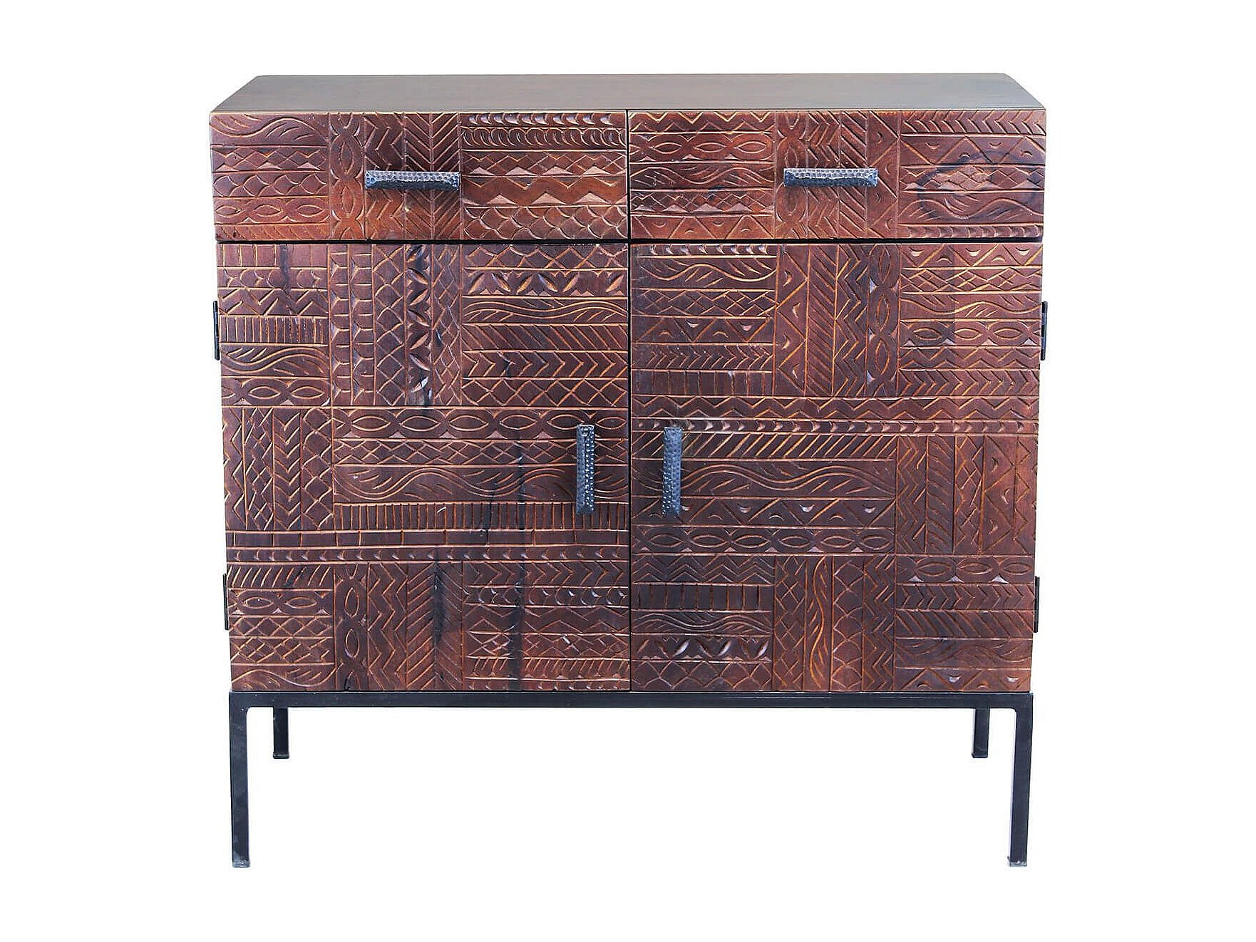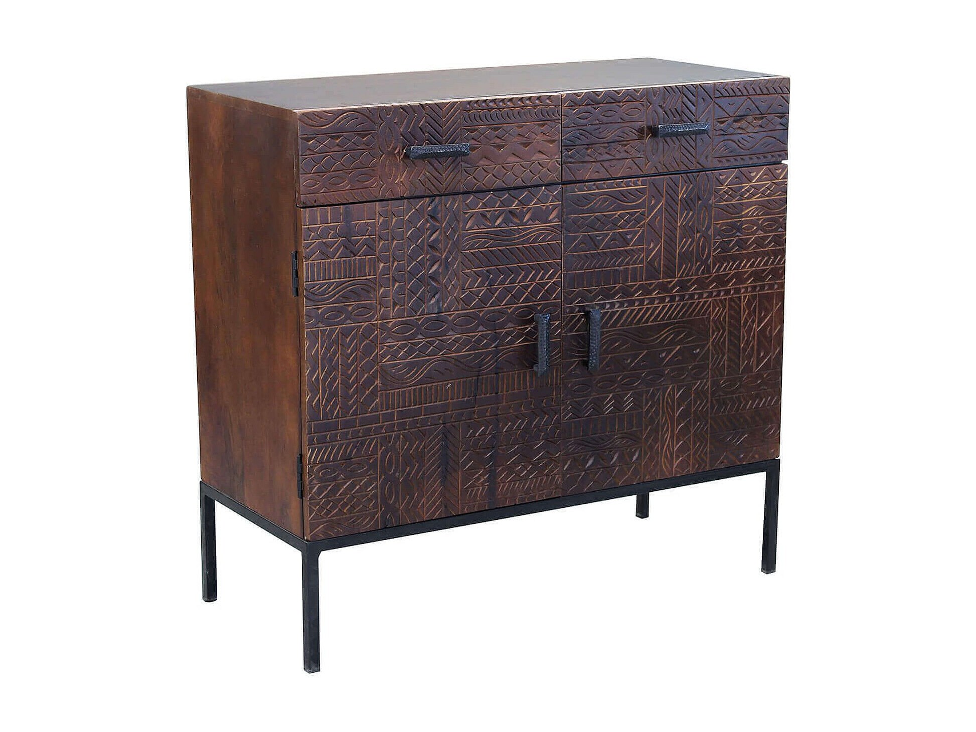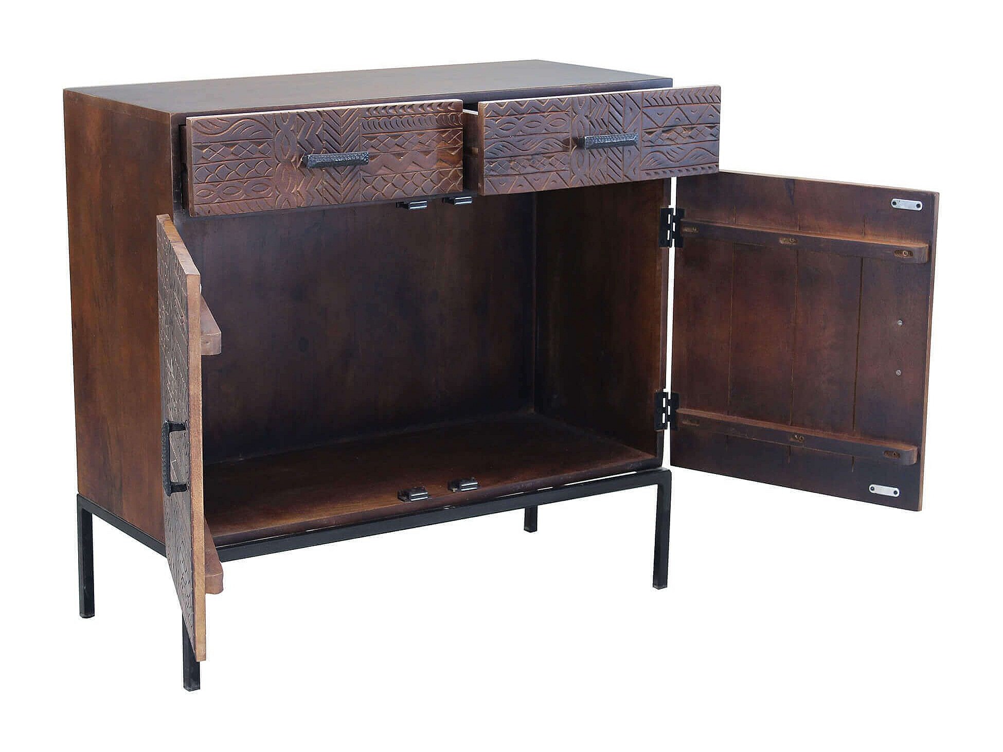 MilaniHome.it - Mobile con decoro wengé con 2 ante e 2 cassetti in legno di mango con struttura in ferro cm 90x40x85 hdi coloreMarrone