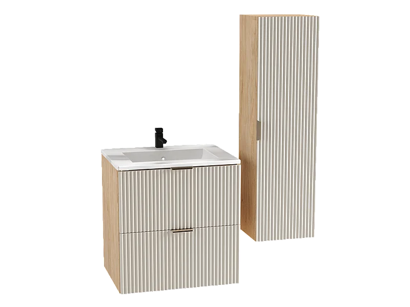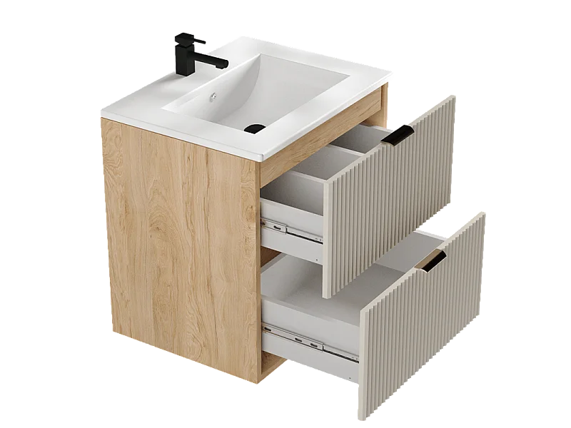 Mobile con lavabo 60 cm Frontali scanalati Kashmir / Noce