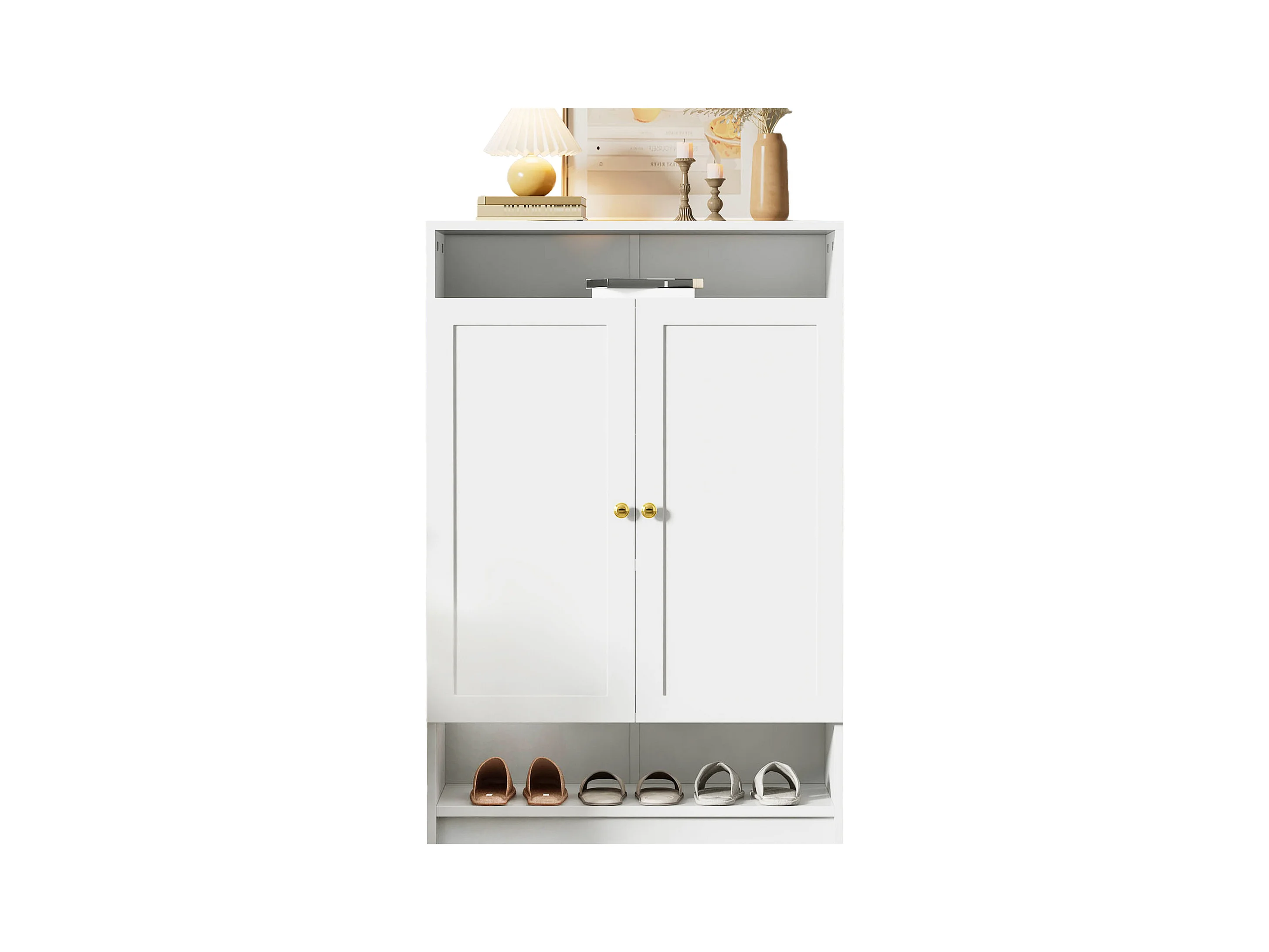 Mobile da pavimento bianco con assi battenti in legno 119 cm ingresso moderno