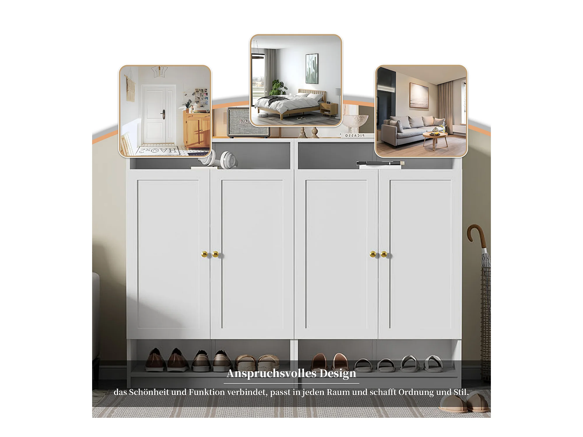 Mobile da pavimento bianco in pannello di legno, multifunzionale, ingresso 146x109 cm con ripiani