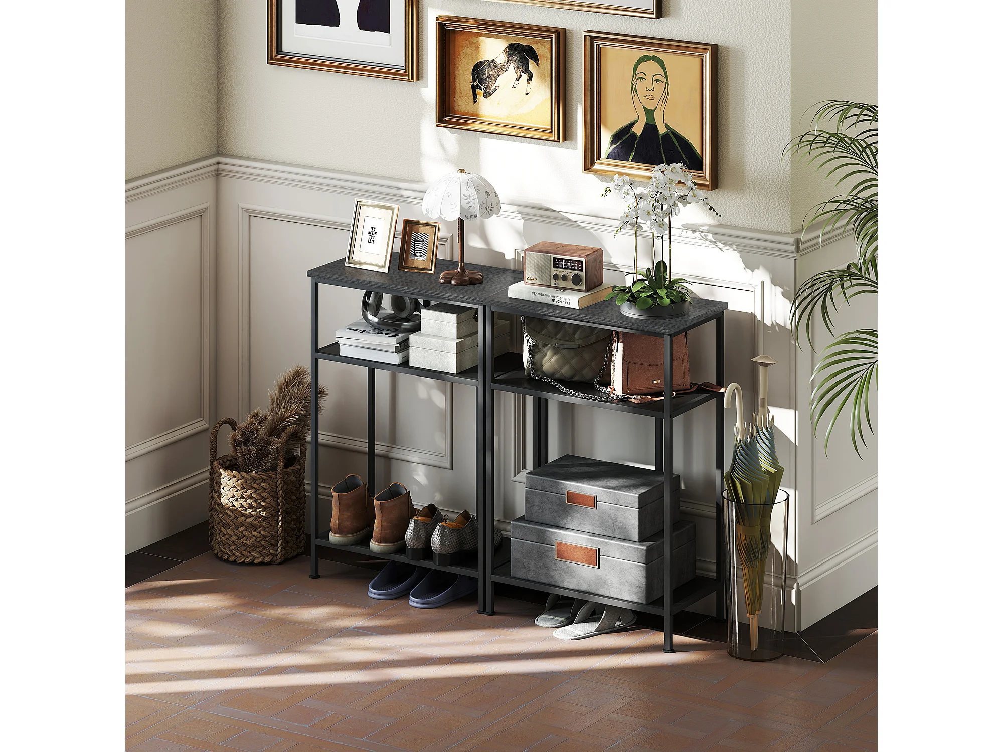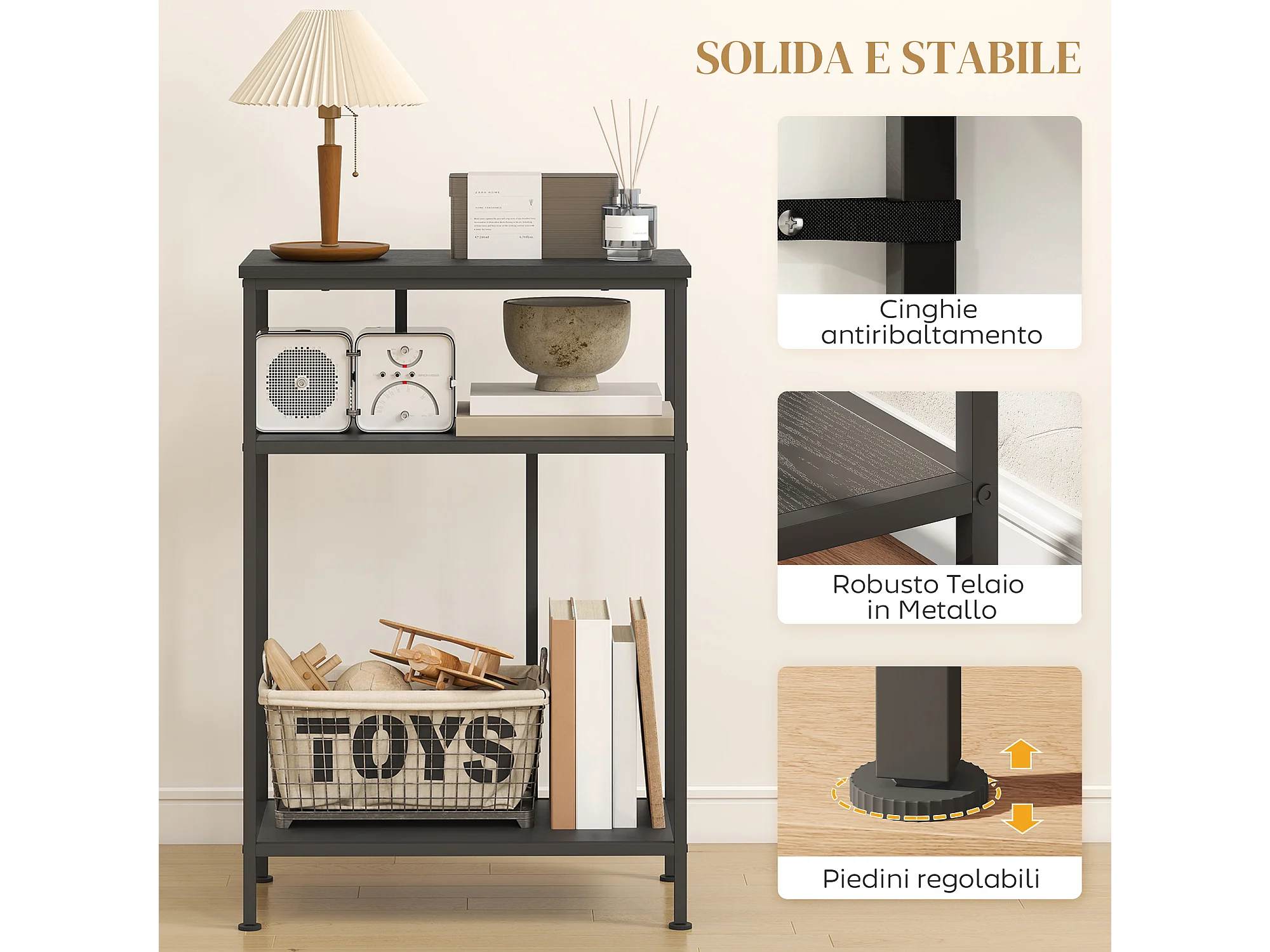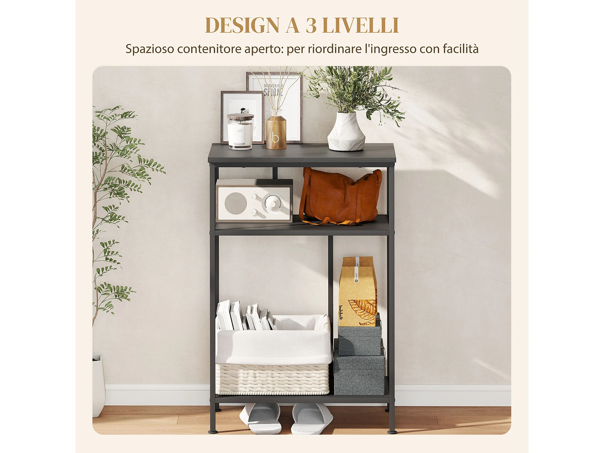 Mobile consolle con 3 ripiani tavolo consolle ingresso con struttura in metallo