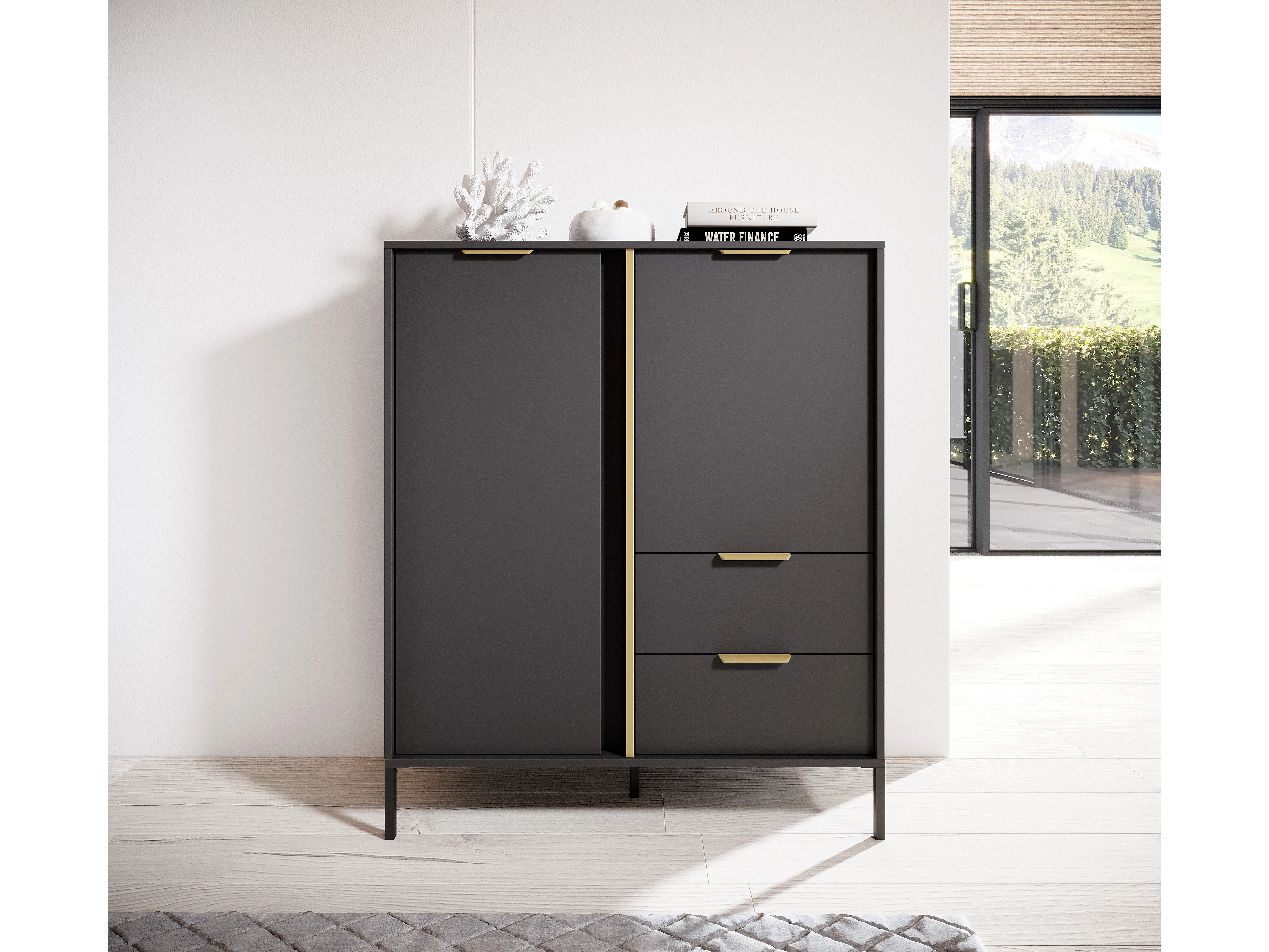 Madia moderna 103x81cm con 2 ante e 1 cassetto antracite con dettagli oro MALK14