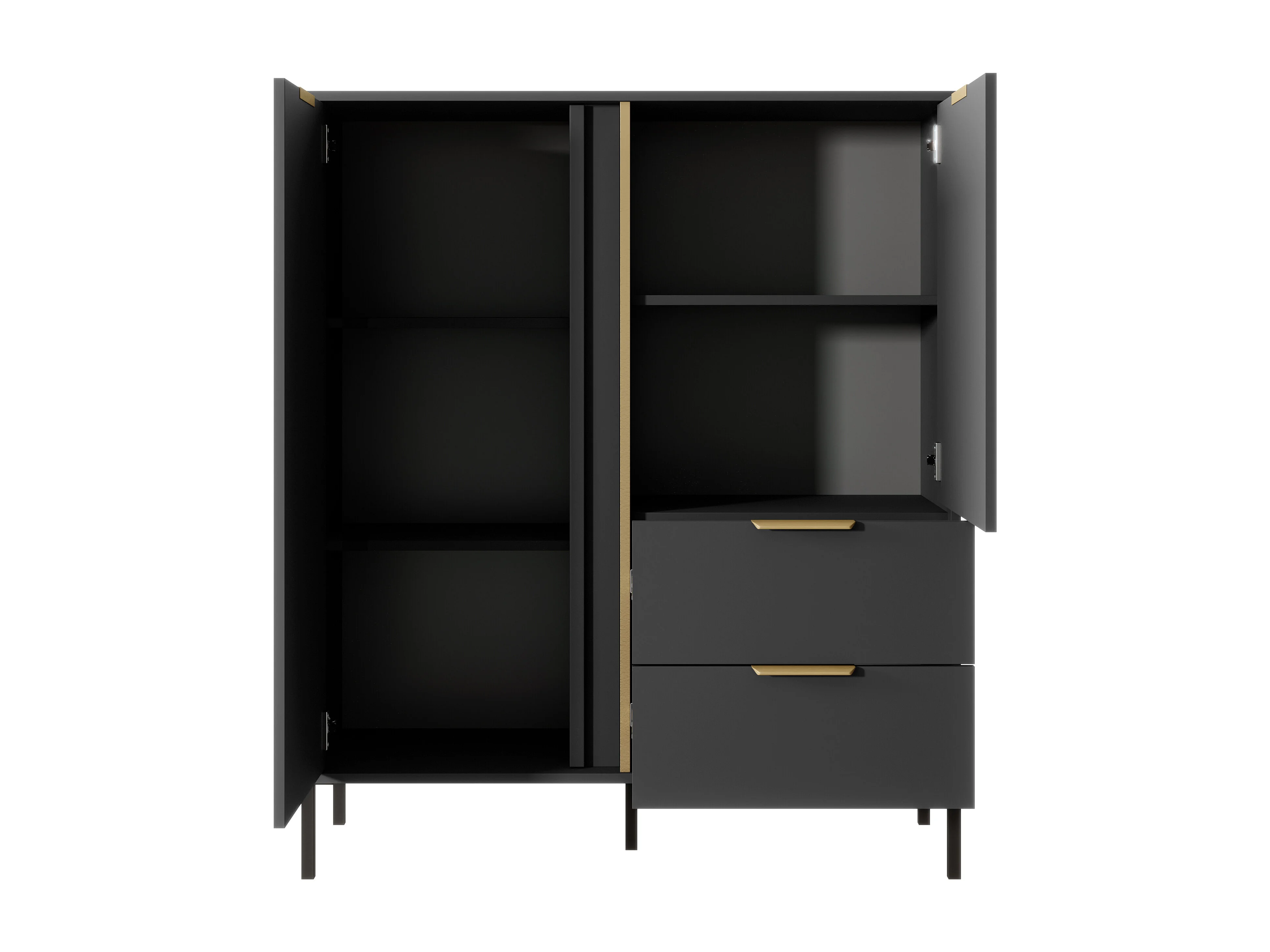 Madia moderna 153x81cm con 3 ante e 2 cassetti antracite con dettagli oro MALK11