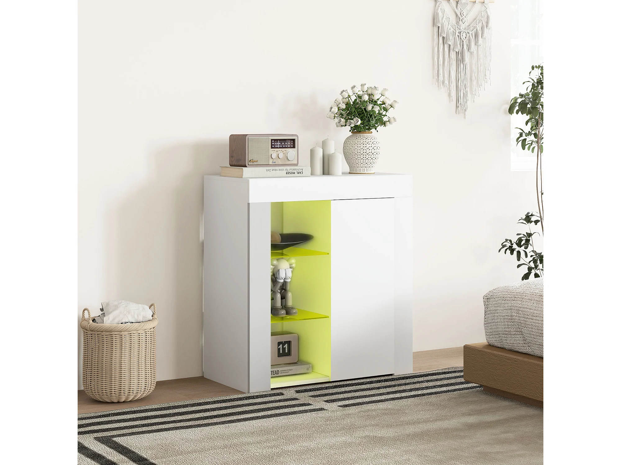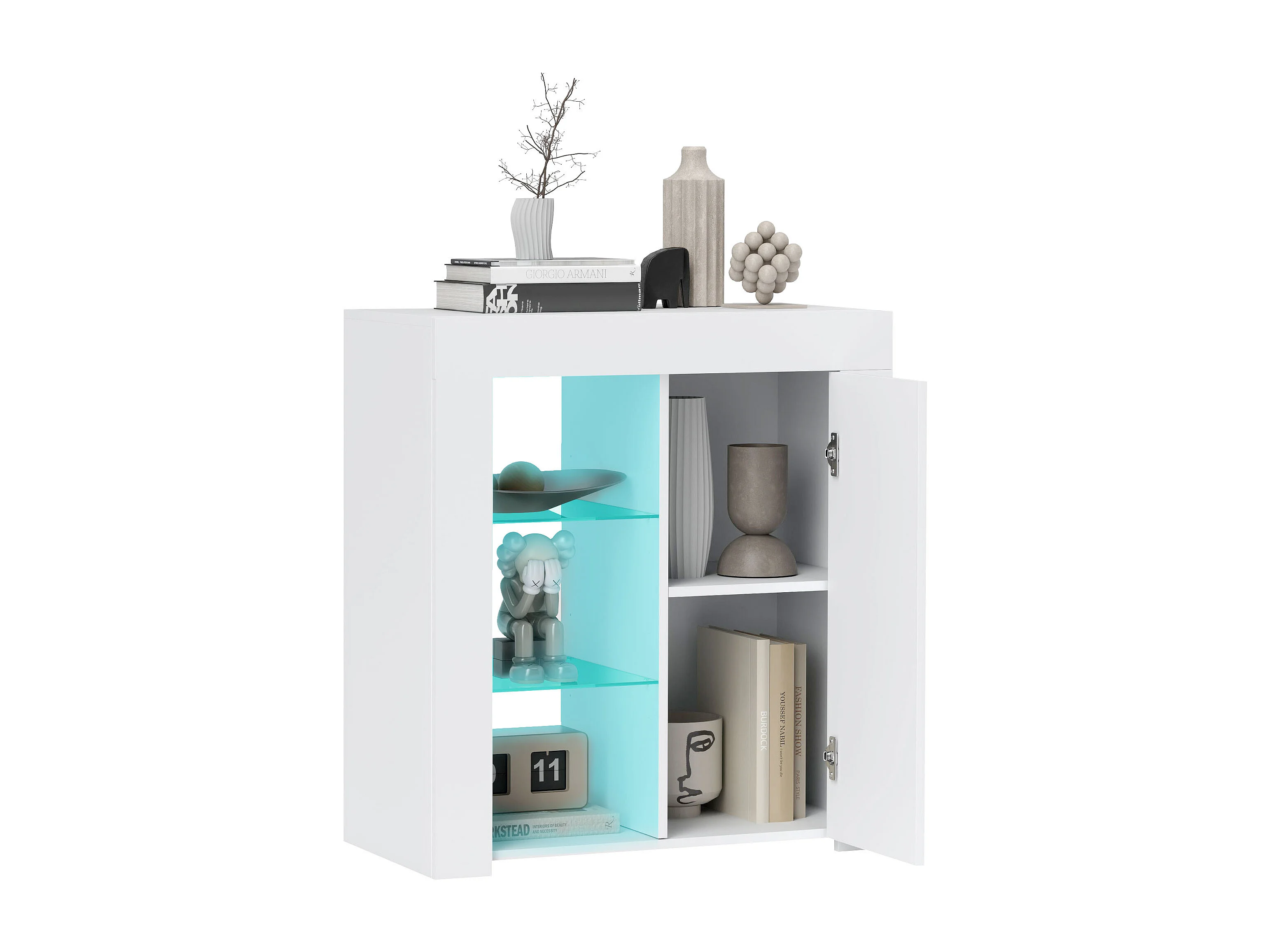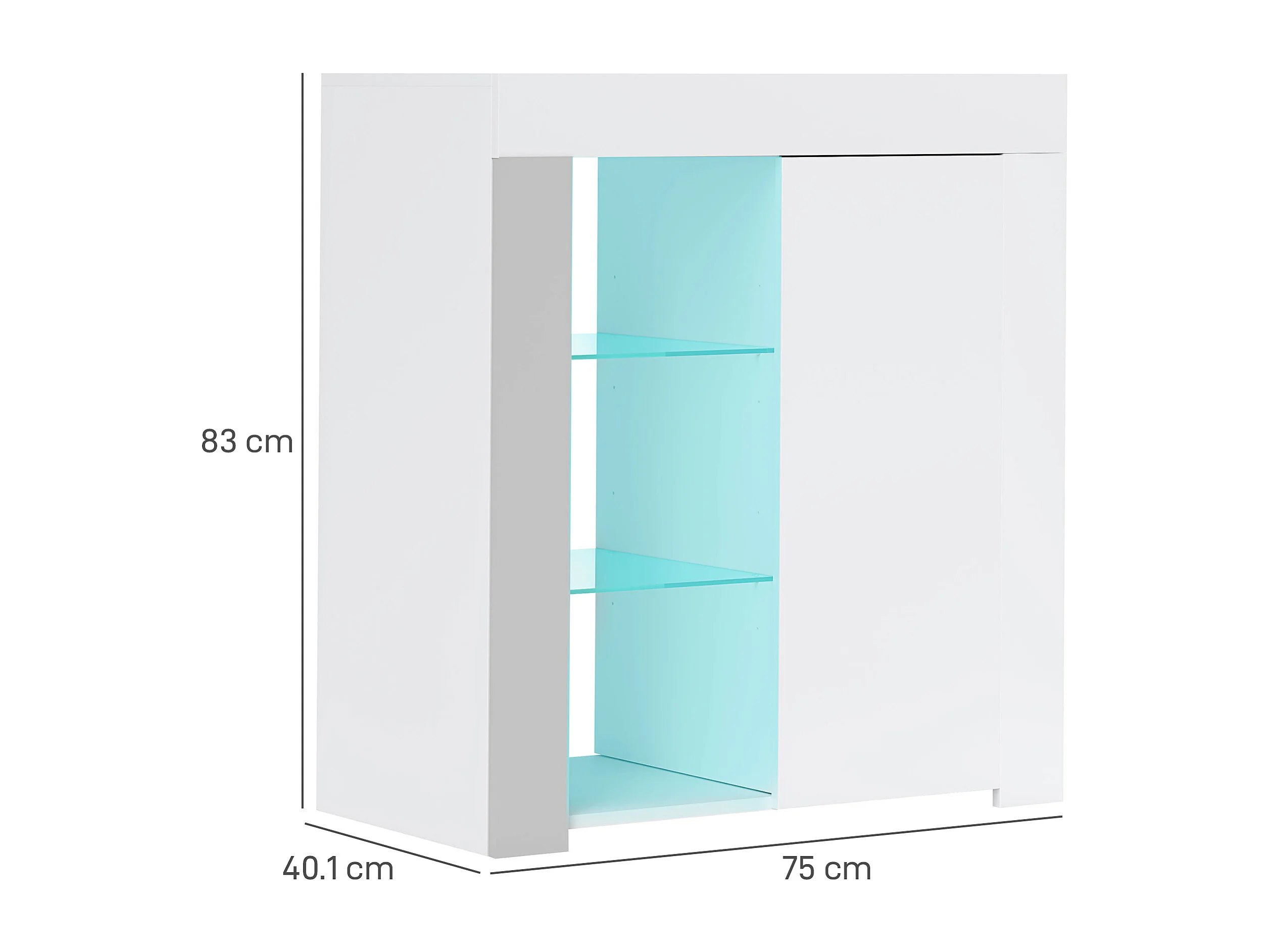Mobile contenitore a led con 3 ripiani aperti e armadietto bianco