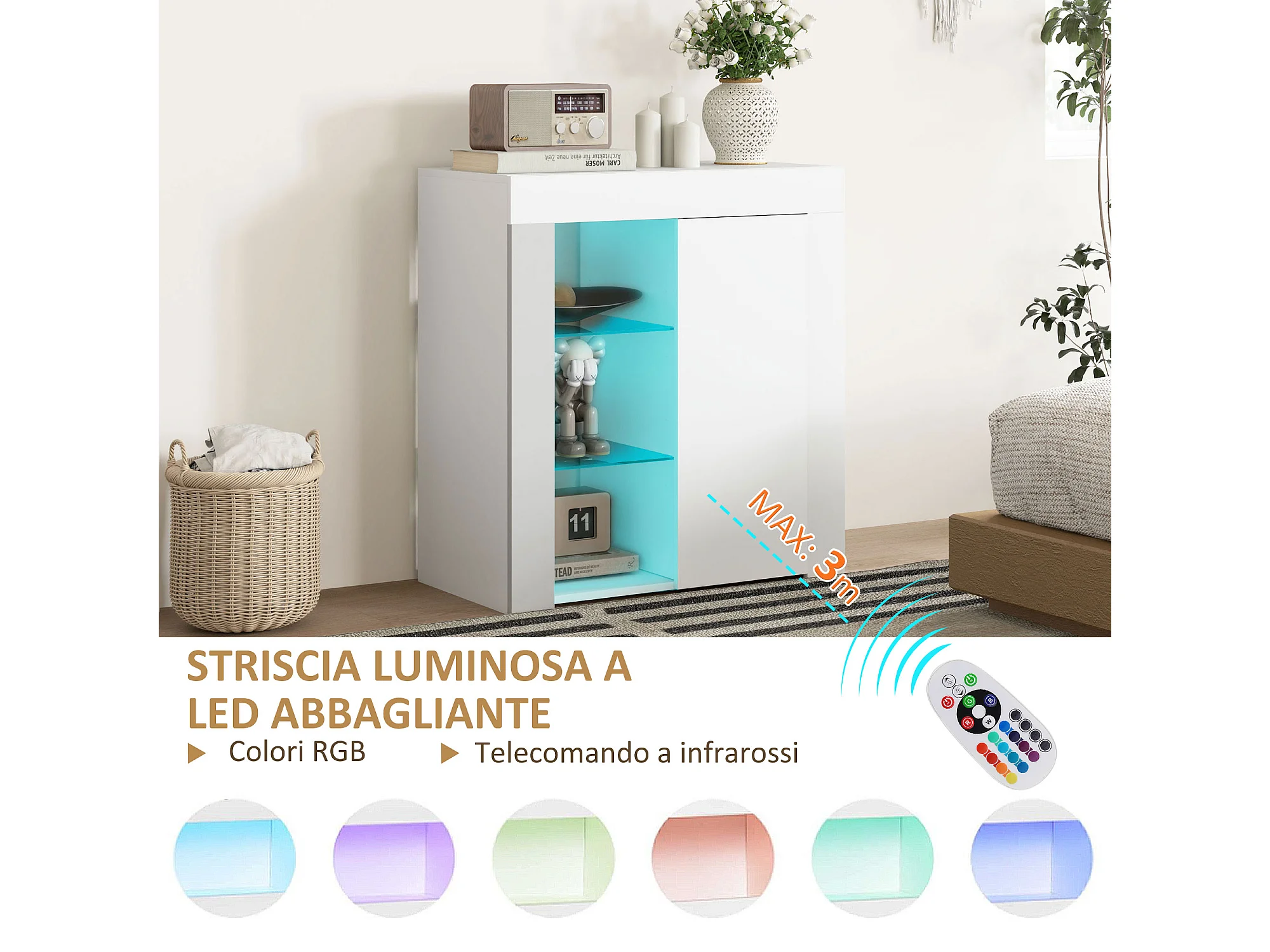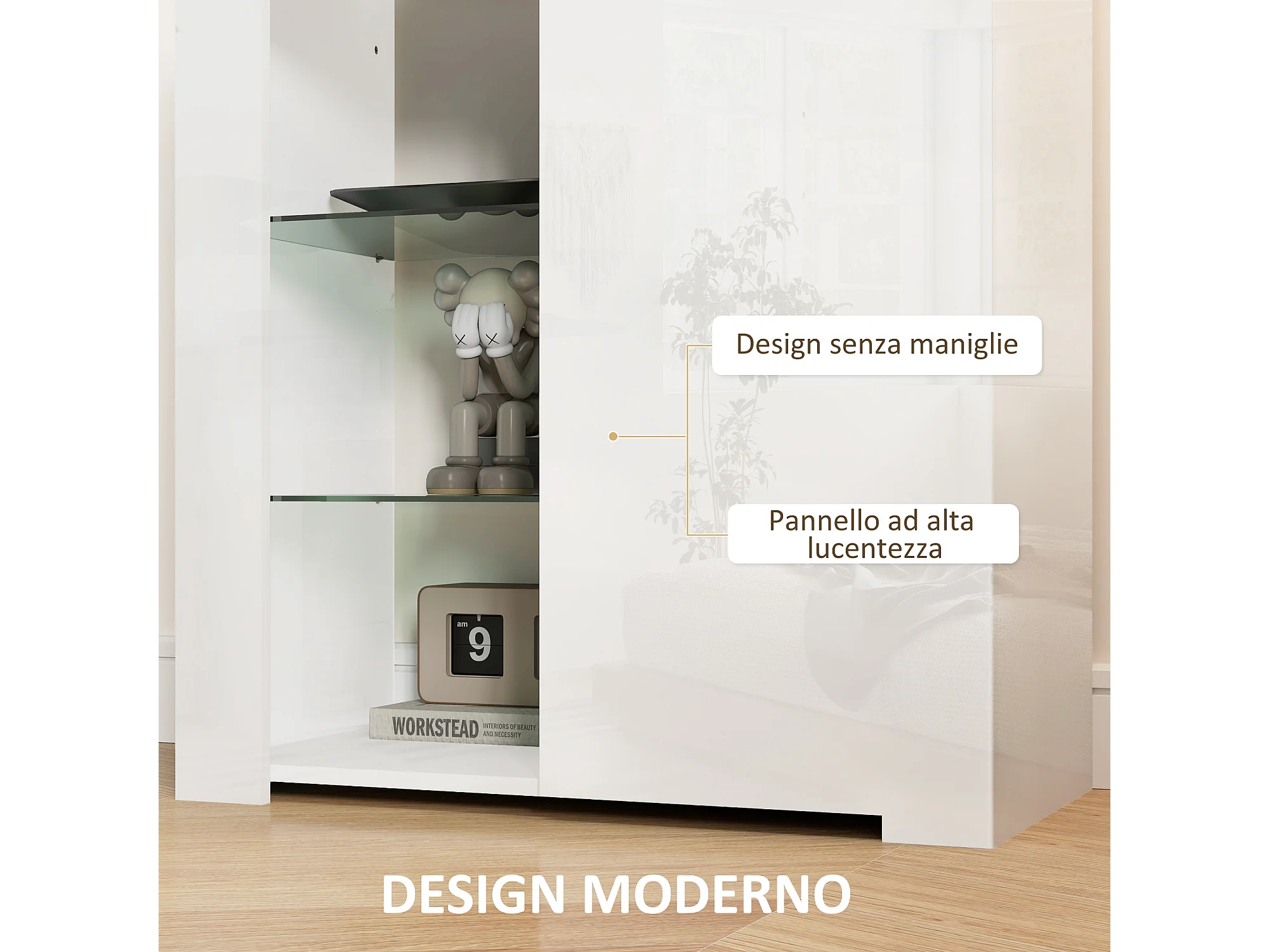 Mobile moderno a anta finitura lucida luci led mensole in vetro