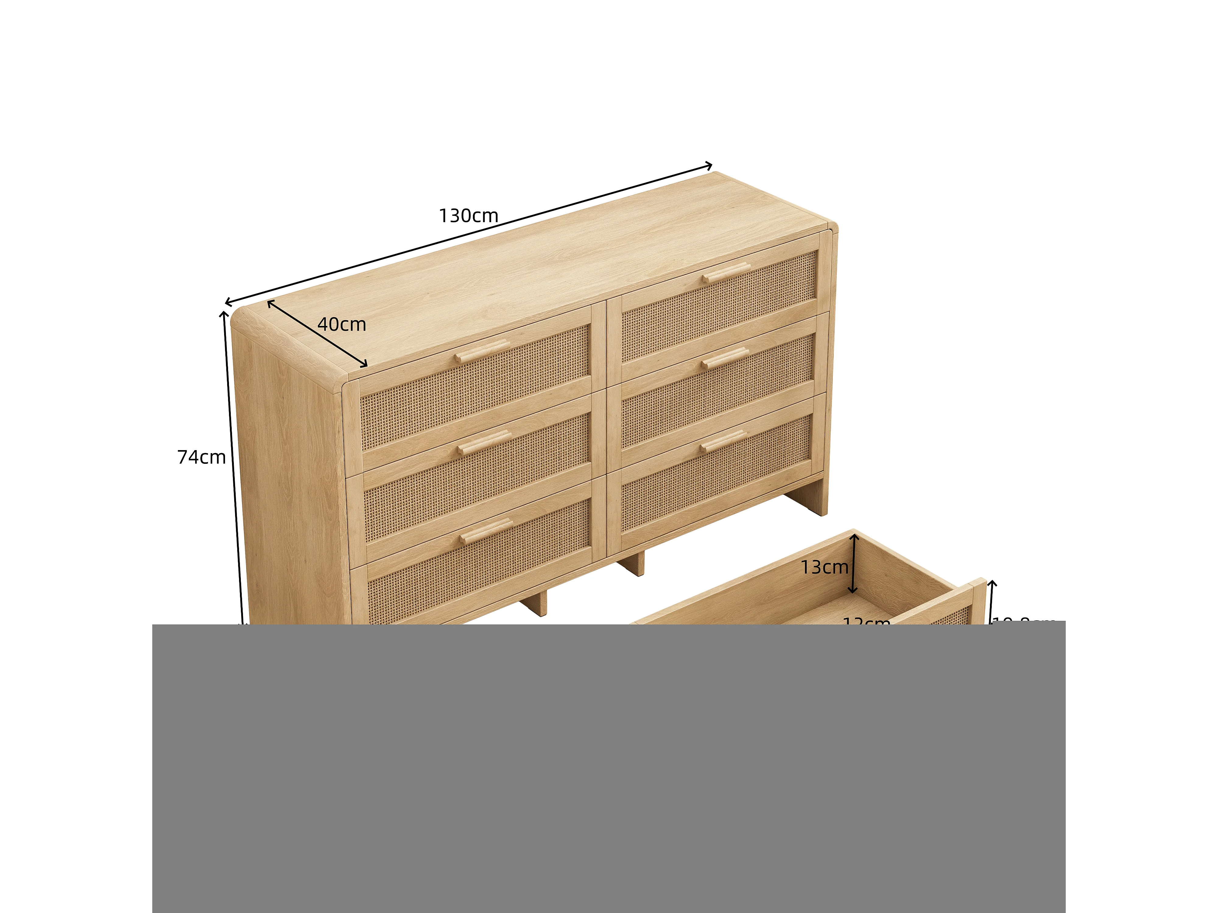 Credenza contenitore 130 x 40 x 75 cm con cassetti in rattan, colore naturale, per soggiorno o camera da letto