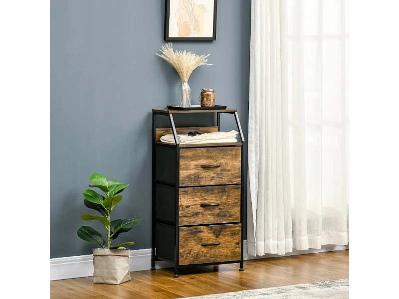 Mobile contenitore in stile industriale, cassettiera con 3 cassetti e 2 ripiani, 44 x 29 x 92 cm, legno e metallo