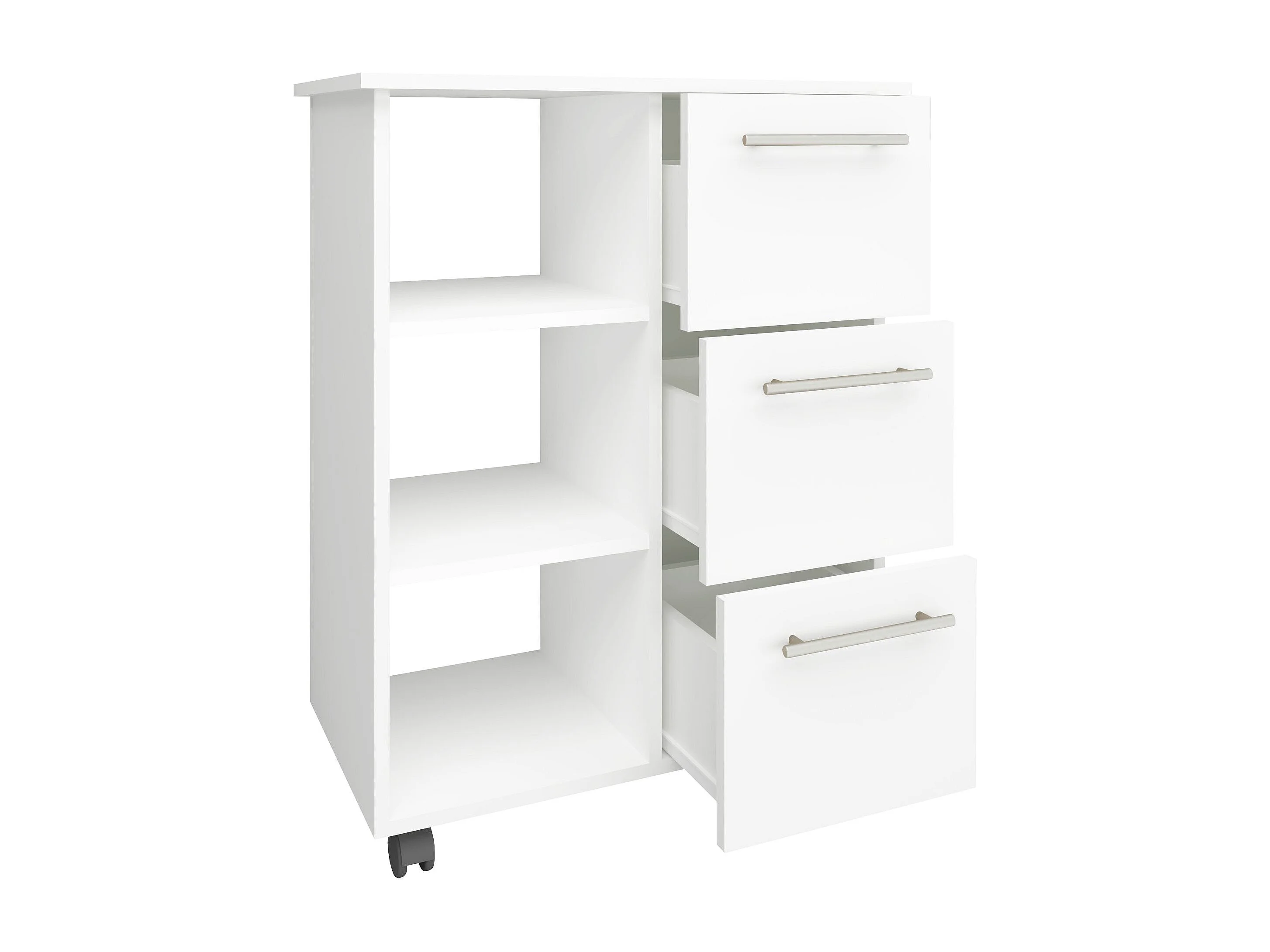 Mobile contenitore Loma, 3 cassetti, 3 ripiani, Bianco, 64 x 35 x 85 cm