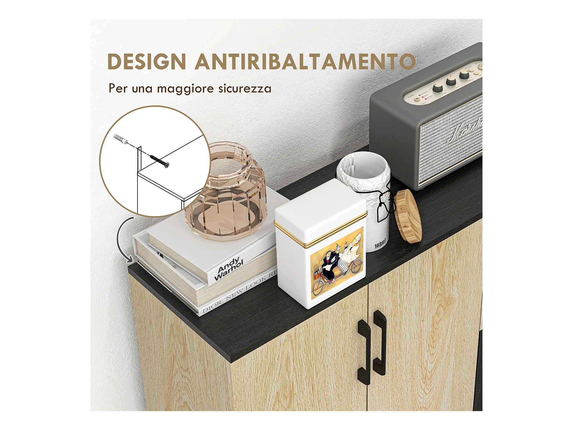 Mobiletto multiuso con armadietto ripiani aperti in legno