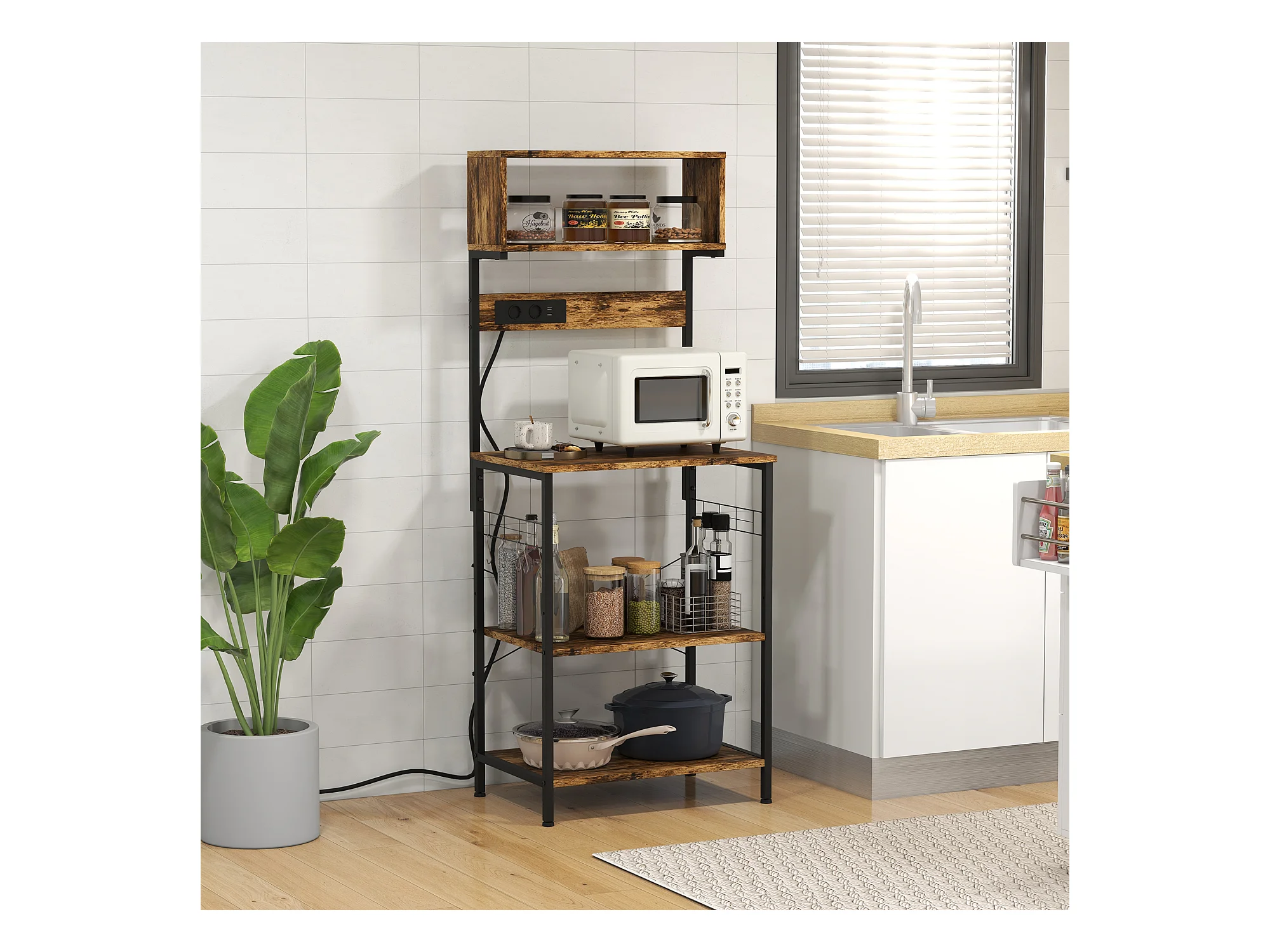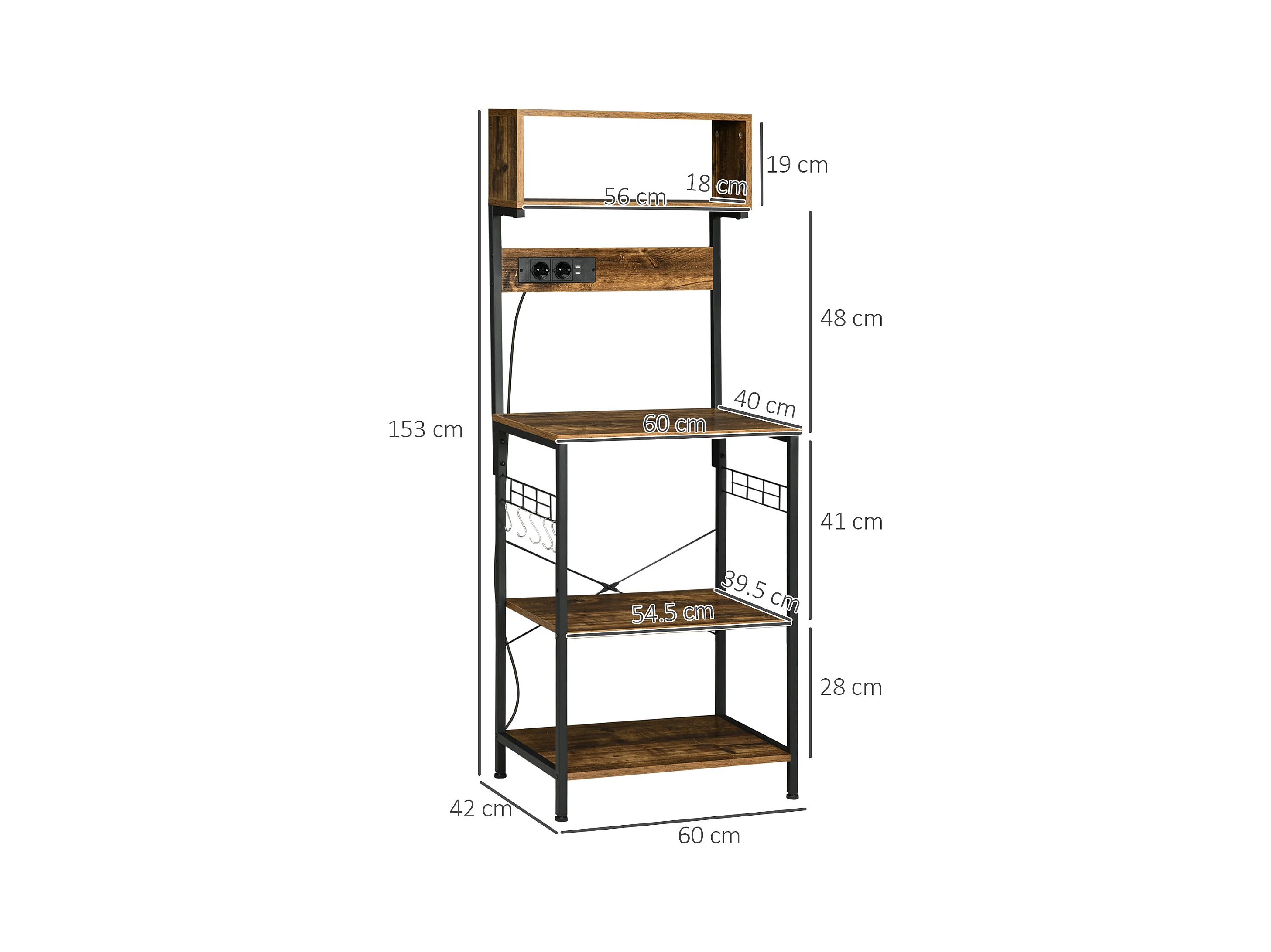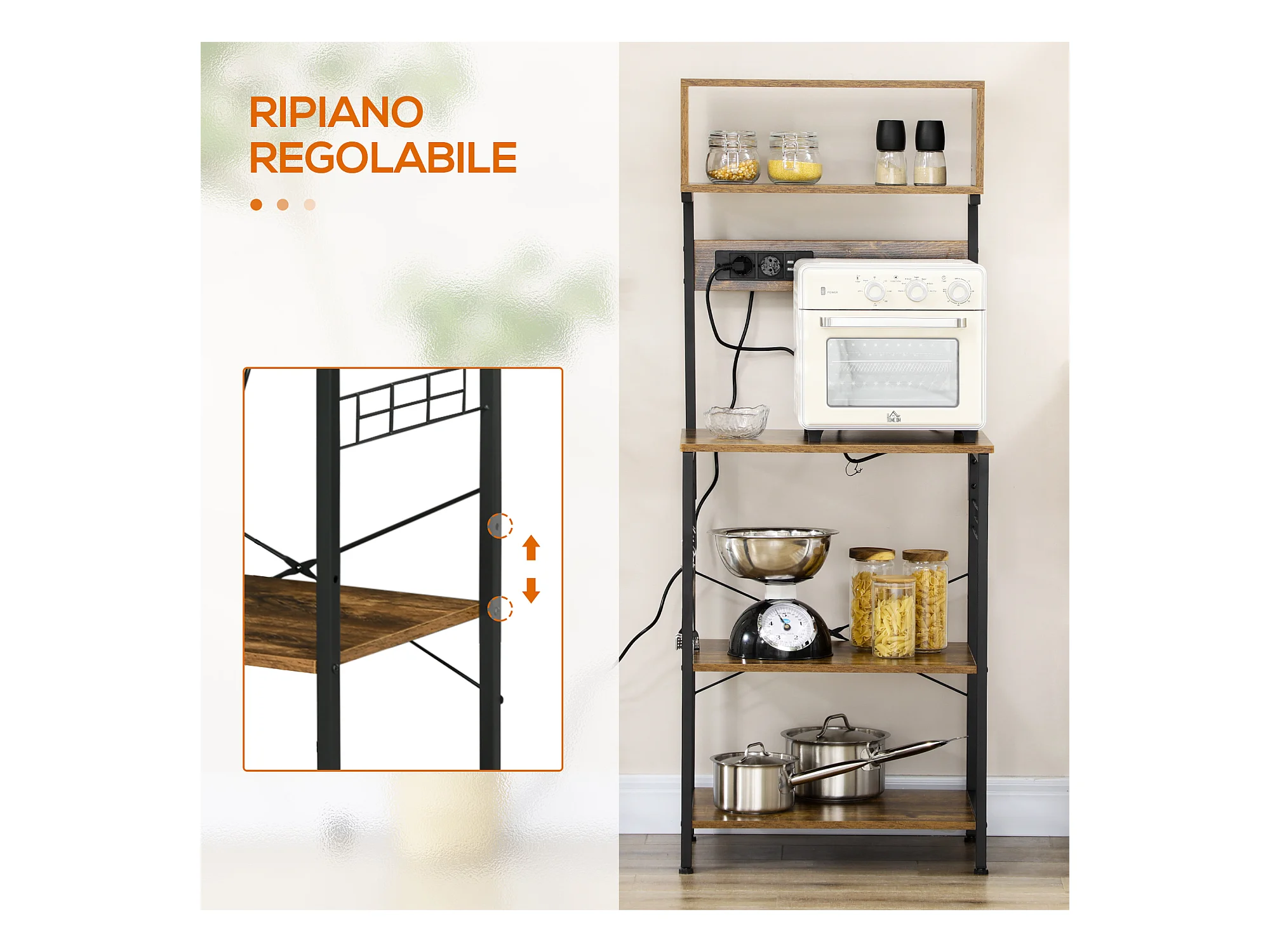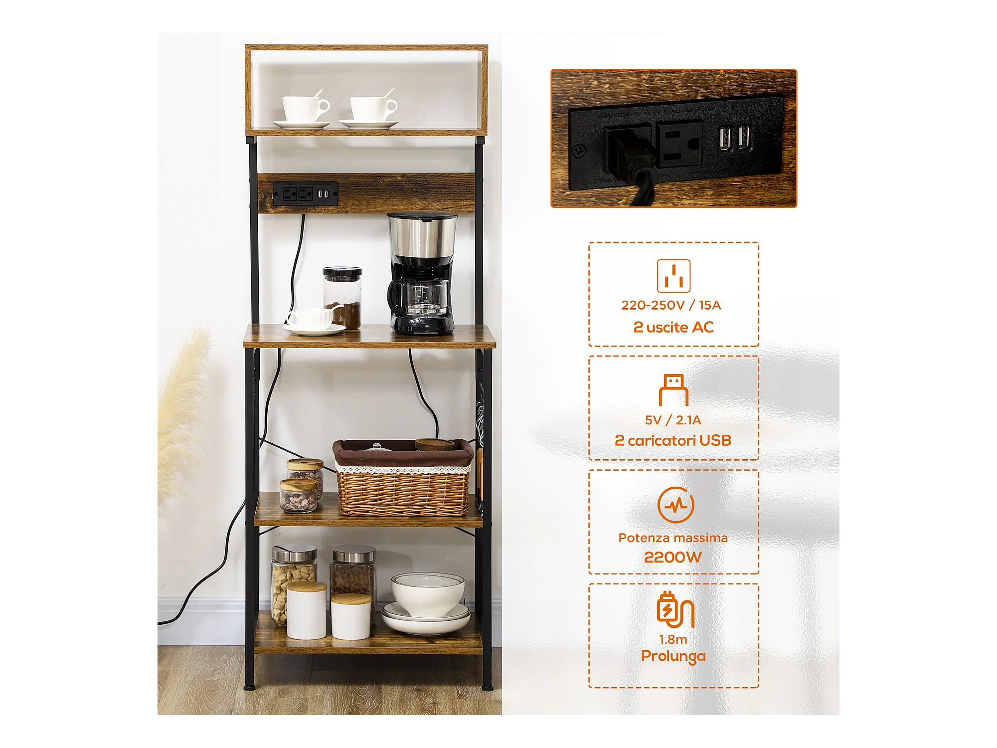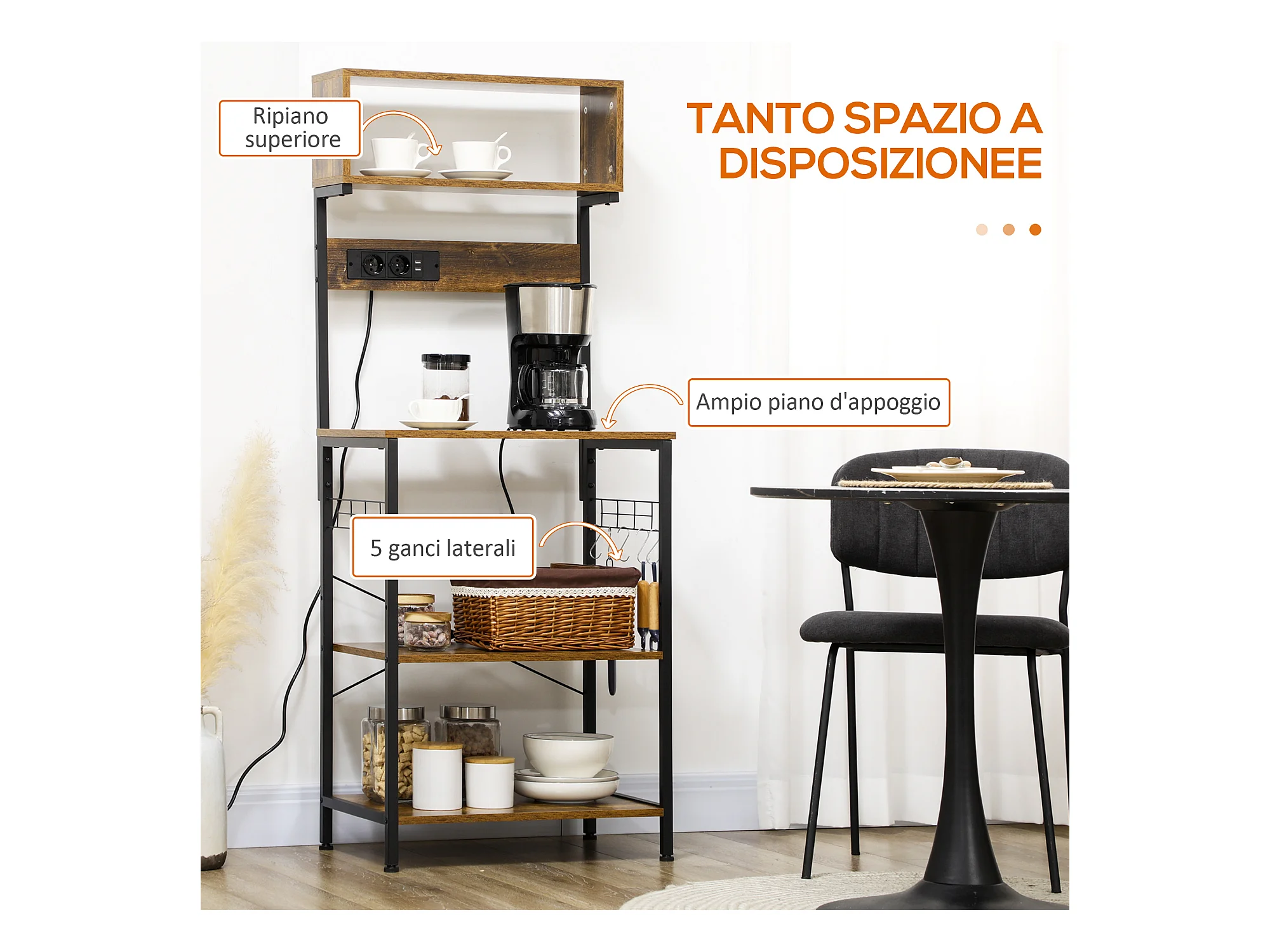 Mobile cucina con multipresa ripiani e ganci acciaio e legno marrone