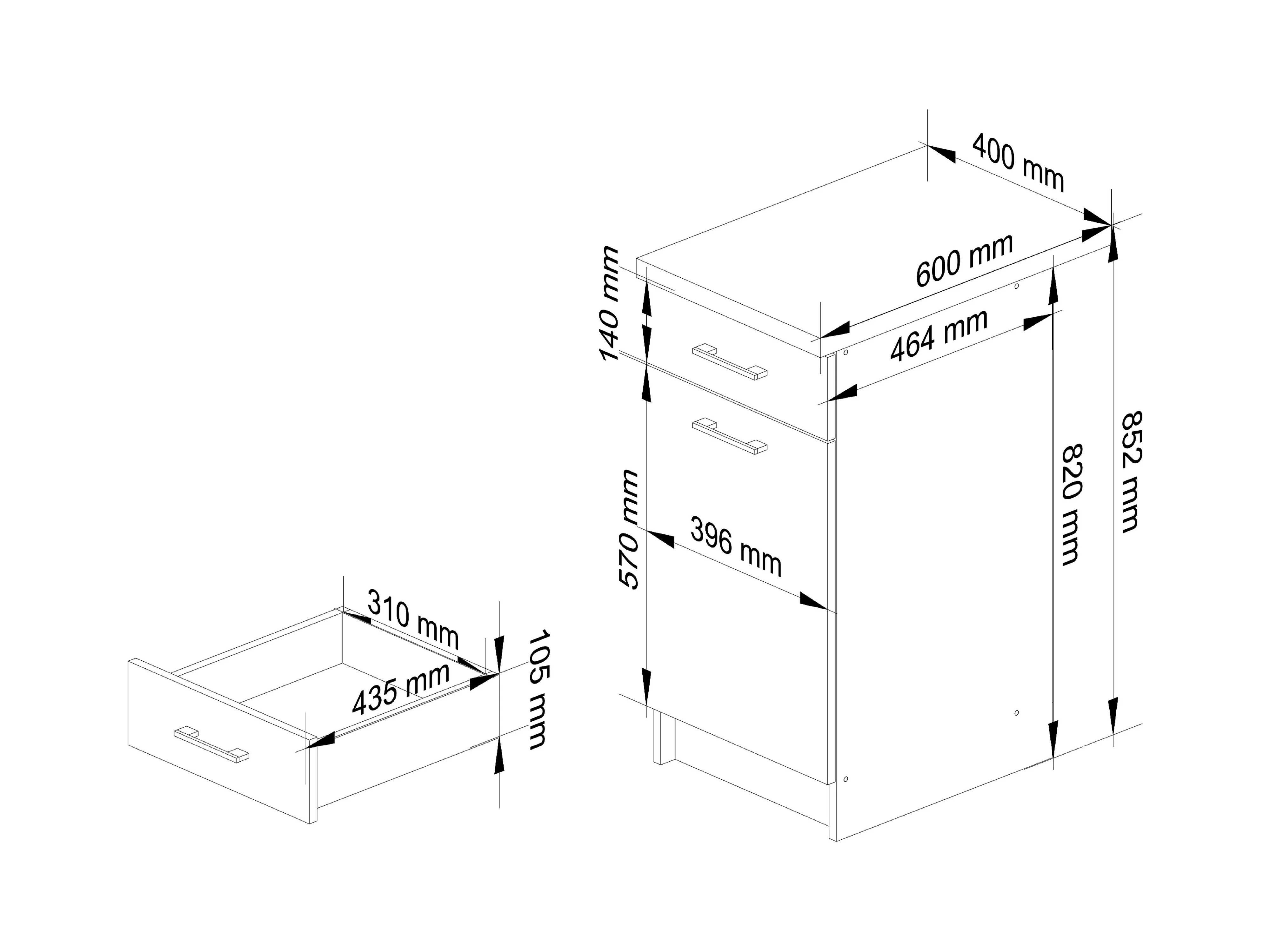 Mobile cucina modulare con piano di lavoro AKORD OLIWIA Bianco, Grigio Grafite 40 cm 1 anta 1 cassetto 40x46x85 cm