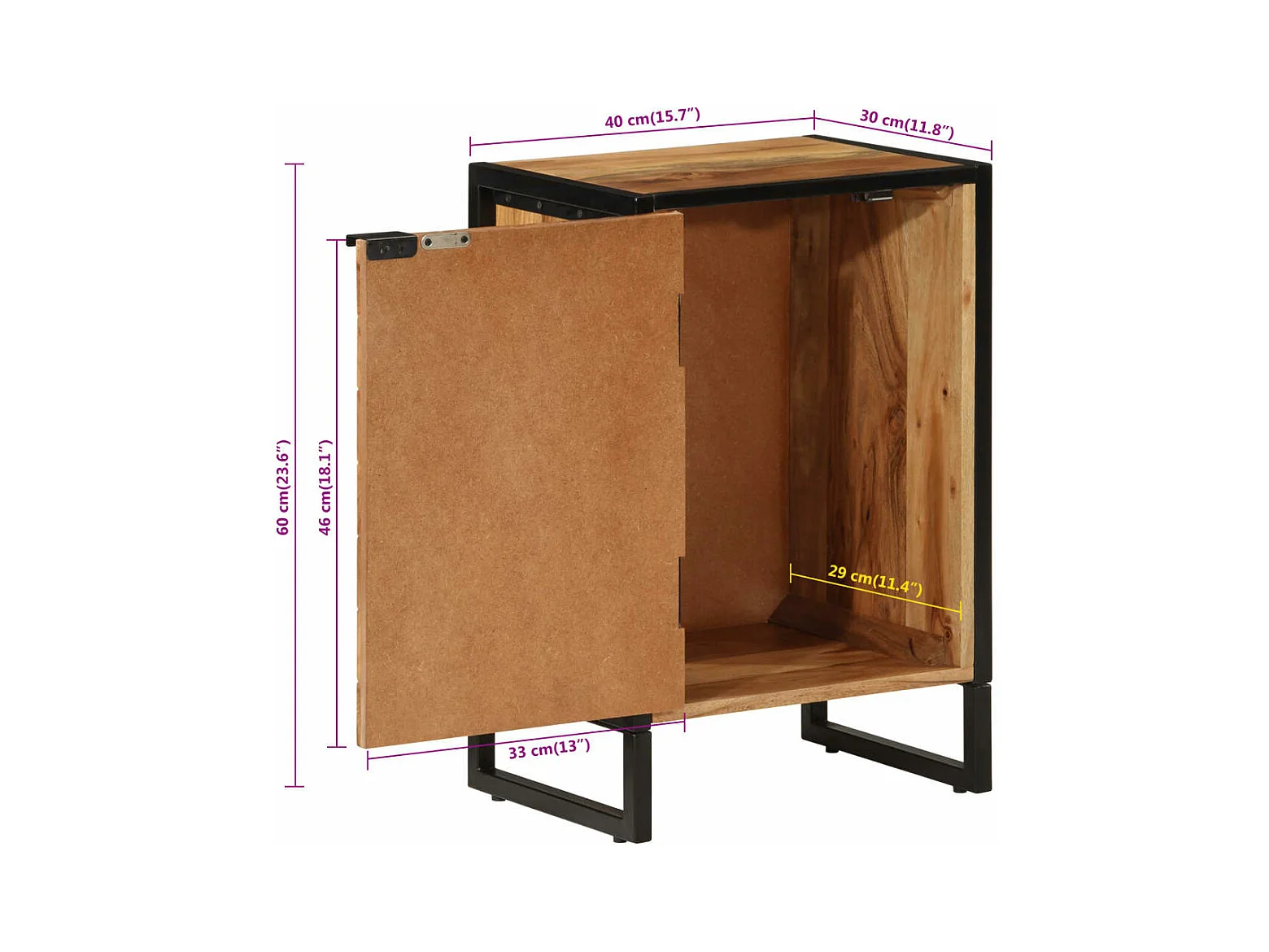 Mobile da Bagno 40x30x60 cm in Legno Massello di Acacia e Ferro
