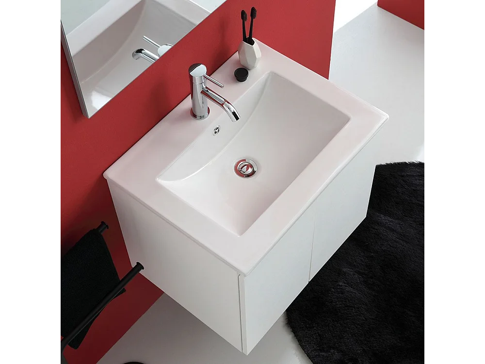 Mobile da bagno bianco "Hydra" 60 cm sospeso a 2 ante con lavabo e specchio