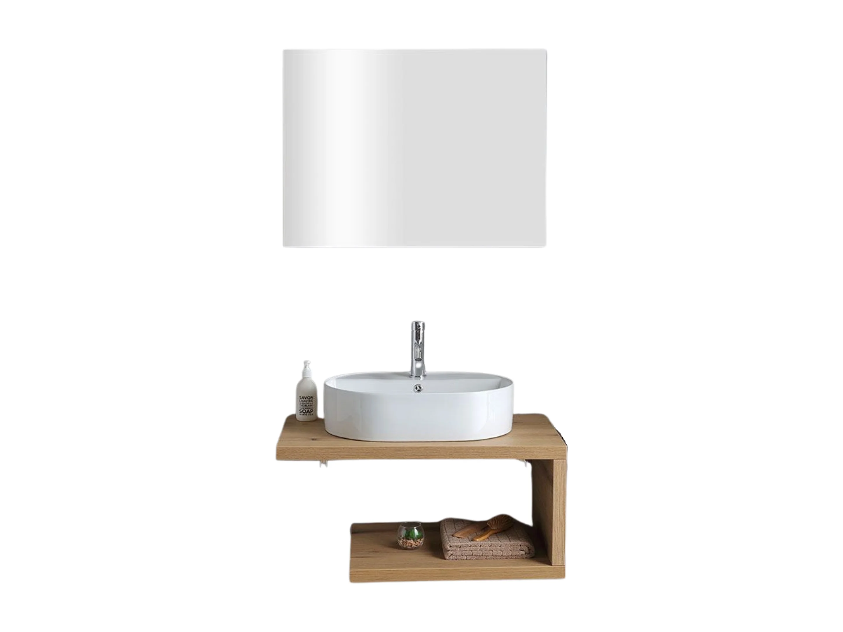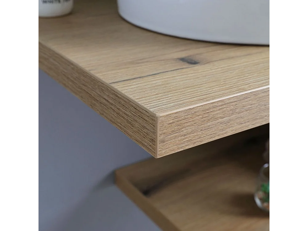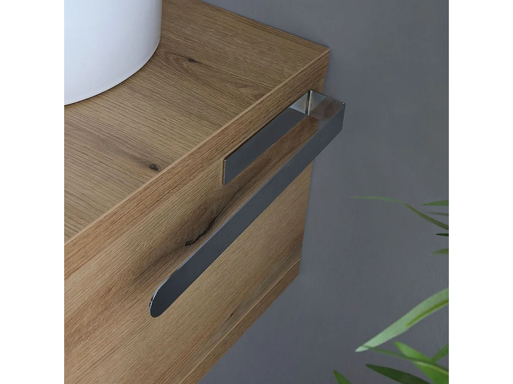Mobile da bagno "Cipro" 80 cm sospeso in rovere naturale con lavabo in ceramica ovale bianco e specchio
