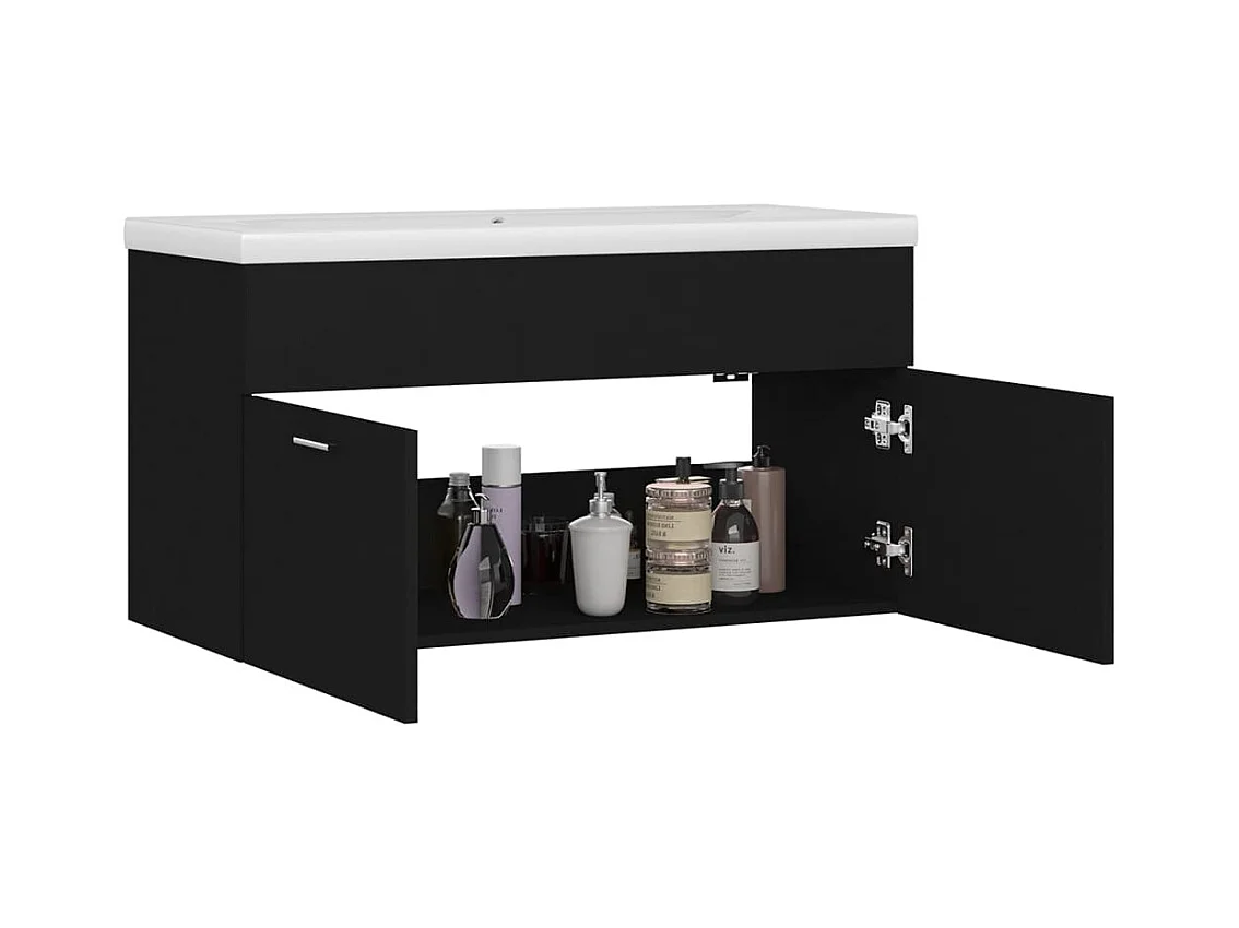 Mobile da Bagno con Lavabo Integrato Nero in Truciolato