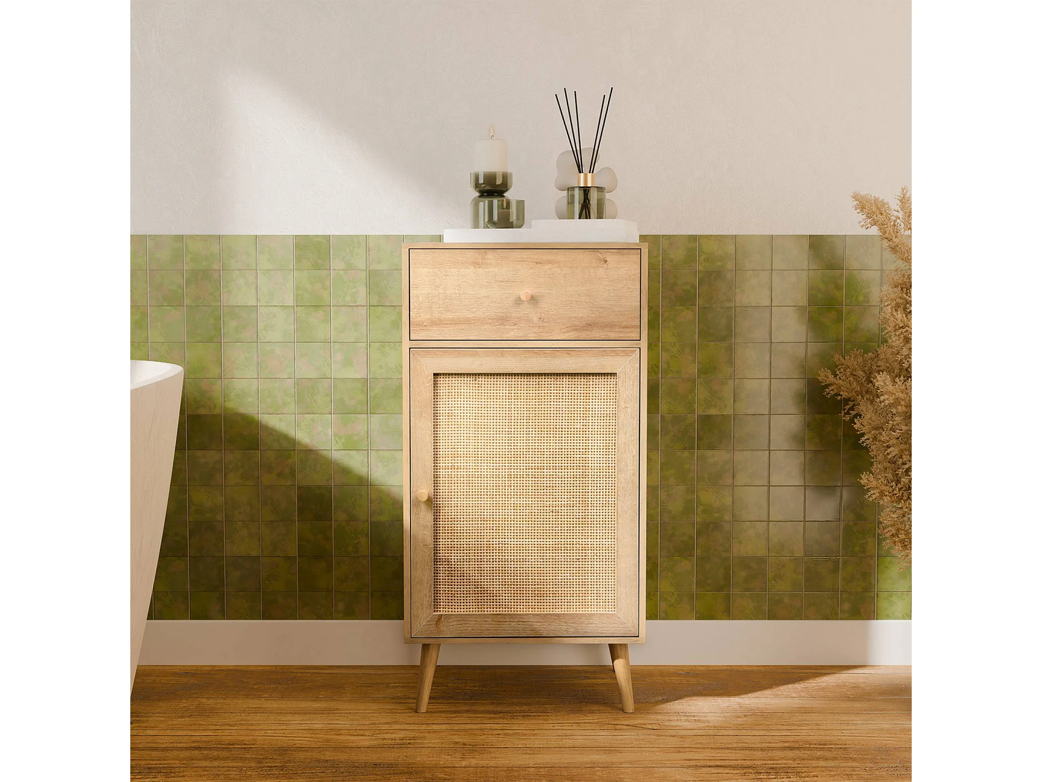 Atlas | Mobile bagno con 1 anta e 1 cassetto in effetto legno
