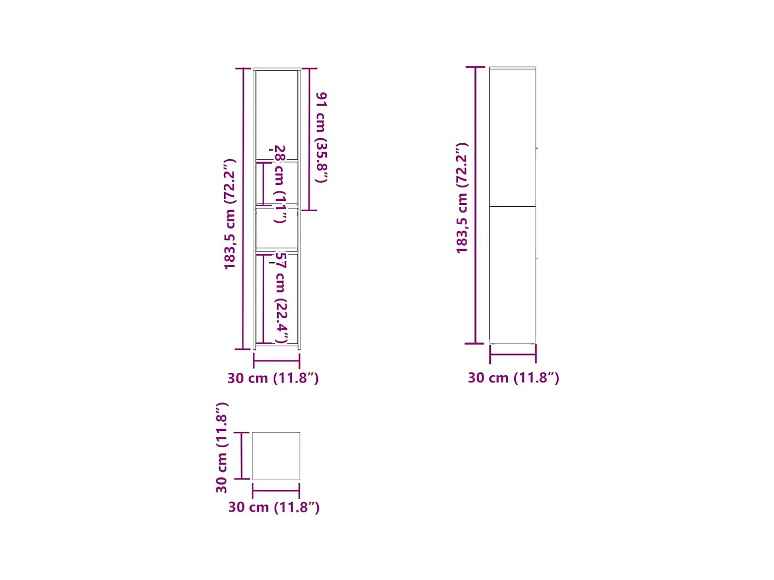 Mobile da Bagno Grigio Cemento 30x30x183,5 cm Legno tecnico