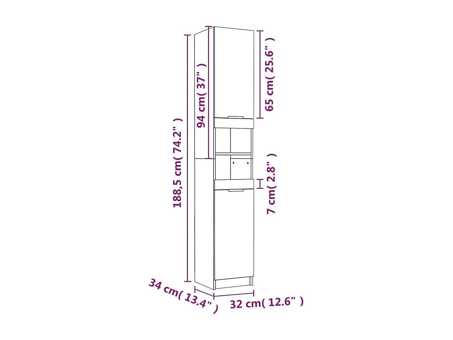 Mobile da Bagno Grigio Cemento 32x34x188,5 cm Legno Multistrato