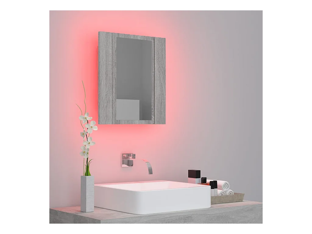 Armadietto a Specchio con LED Grigio Sonoma 80x12x45cm Acrilico