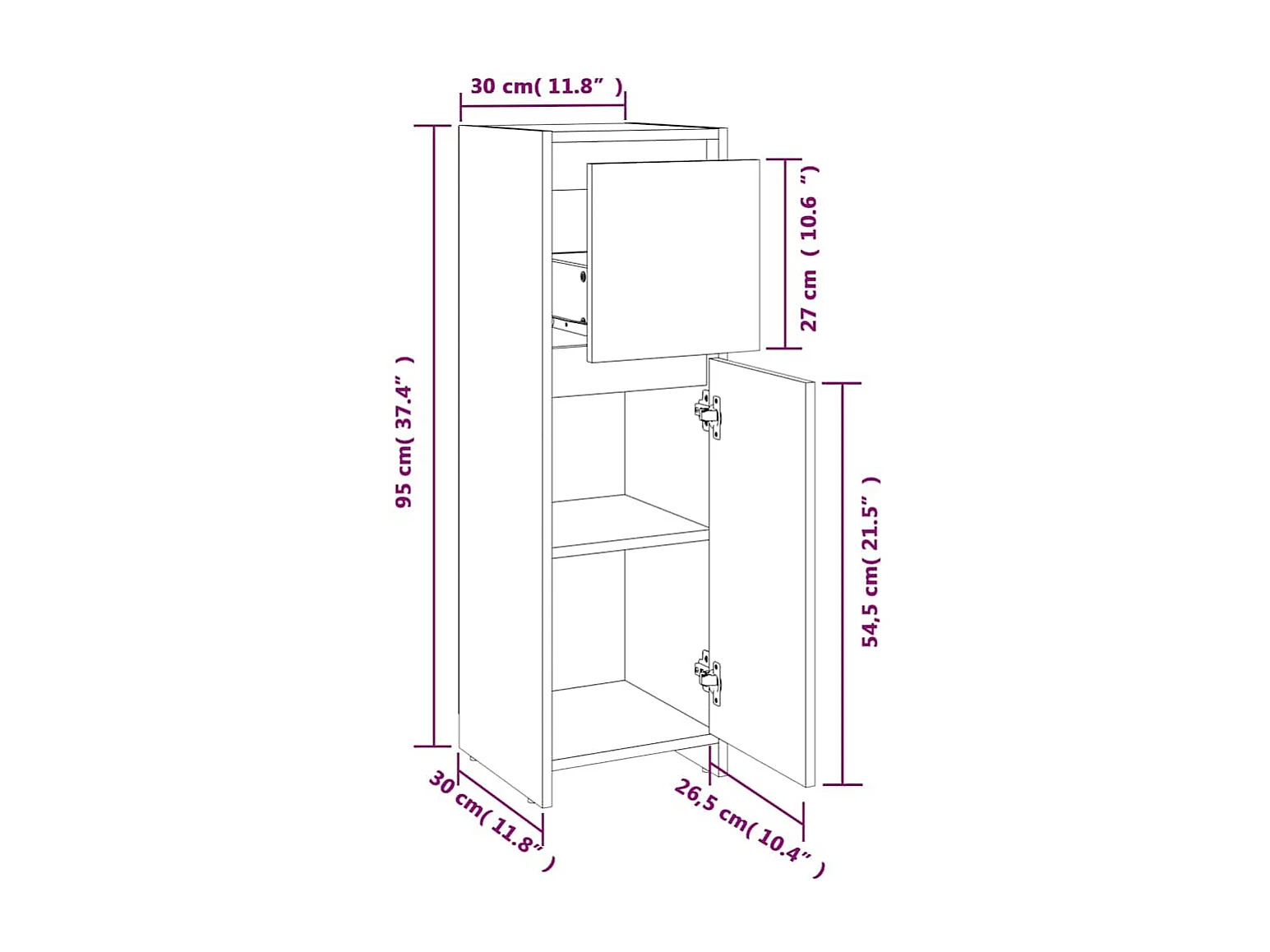 Mobile da Bagno Nero 30x30x95 cm in Legno Multistrato
