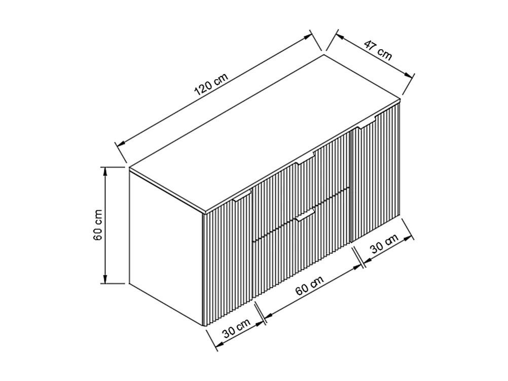 Mobile da bagno per lavabo WENA, con 2 porte e 2 cassetti, frontali scanalati, Willy, 120x60x47 cm, Nero