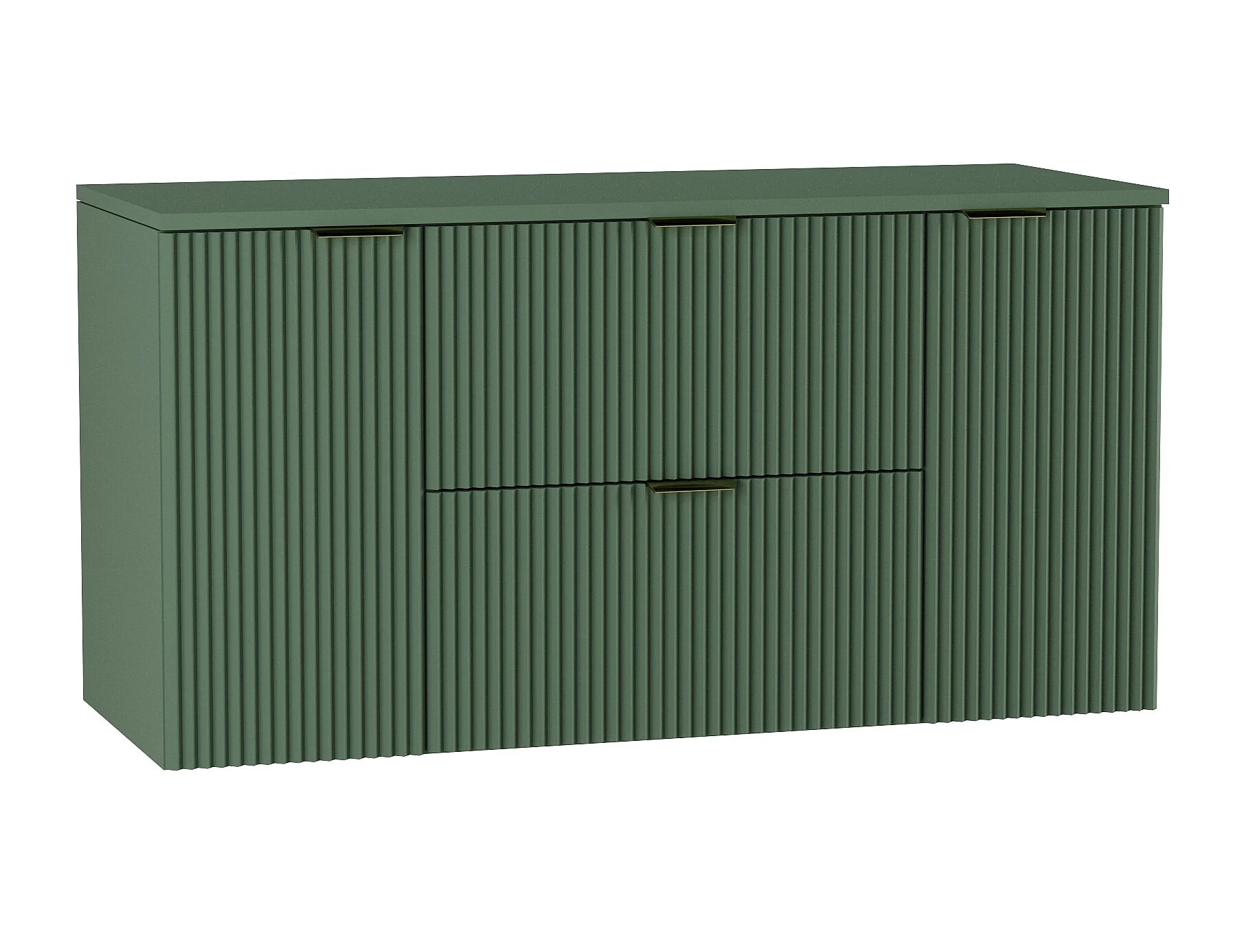 Mobile da bagno per lavabo WENA, con 2 porte e 2 cassetti, frontali scanalati, Willy, 120x60x47 cm, Verde