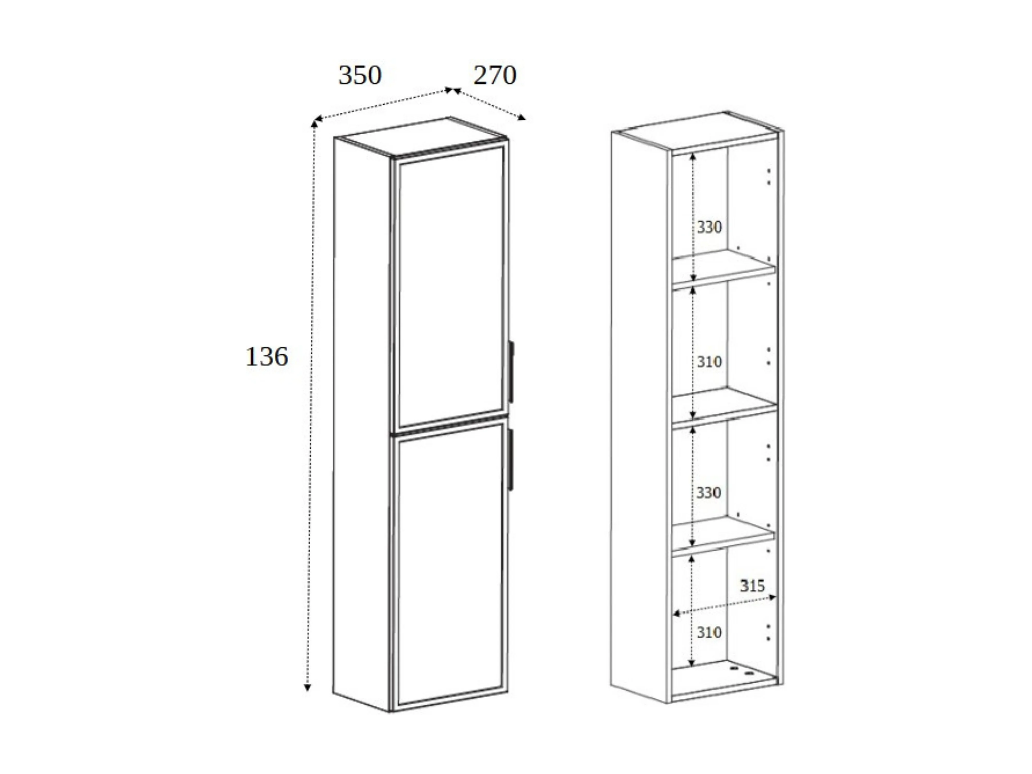 Mobiletto da bagno, Rovere Craft, maniglia argento, 35 x 136 x 27 cm