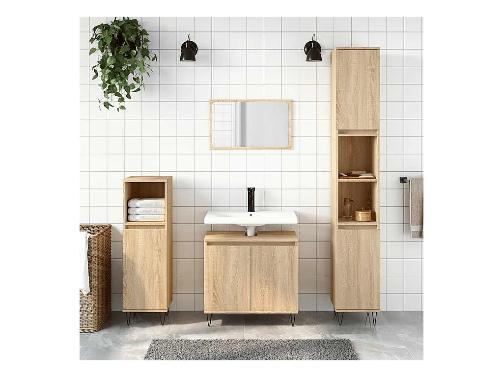 Mobile da Bagno Rovere Sonoma 58x33x60 cm in Legno Multistrato