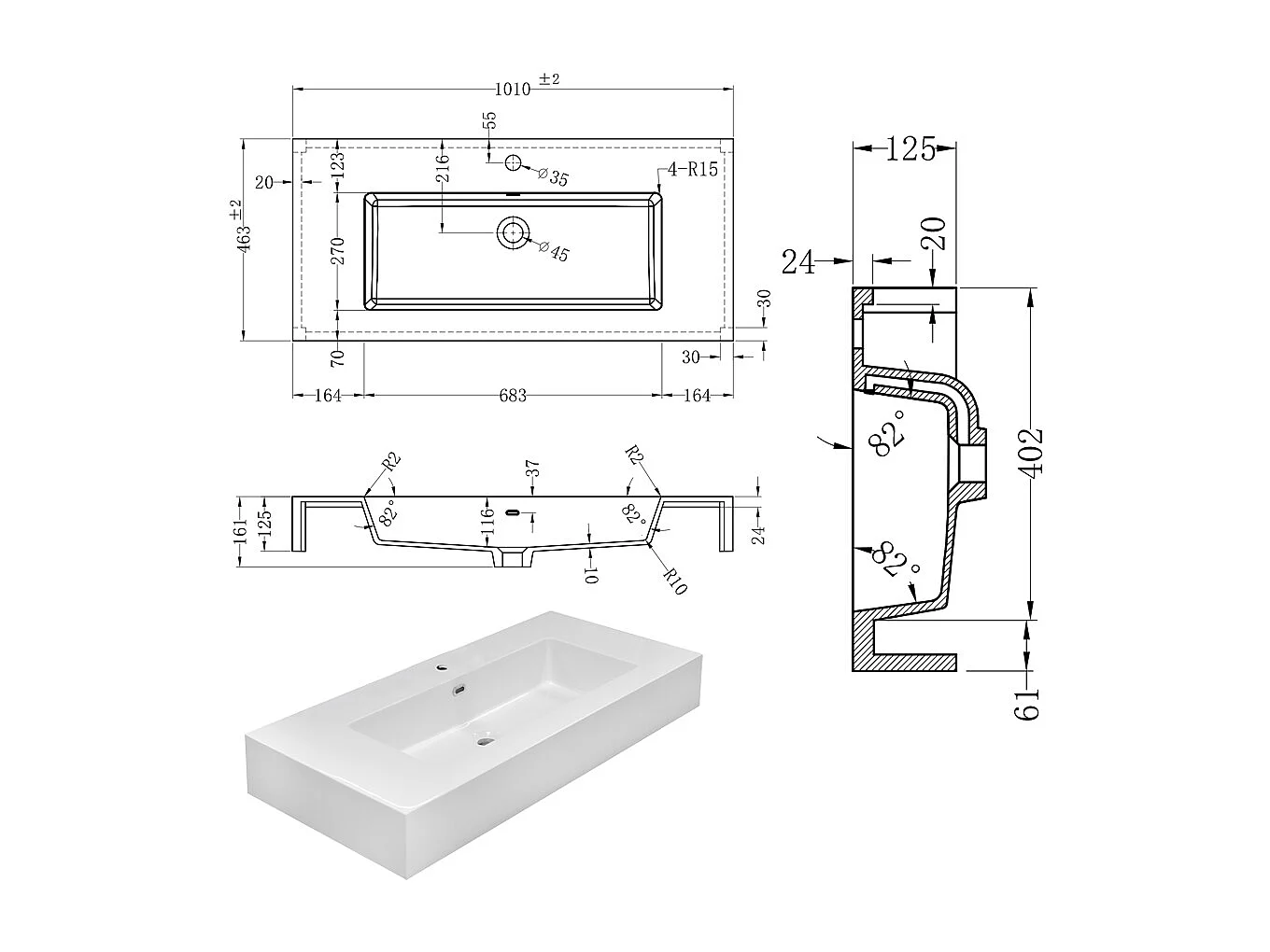 Mobile da bagno sospeso 100 cm in legno color noce con lavabo, specchio e faretto a led I Made in Italy