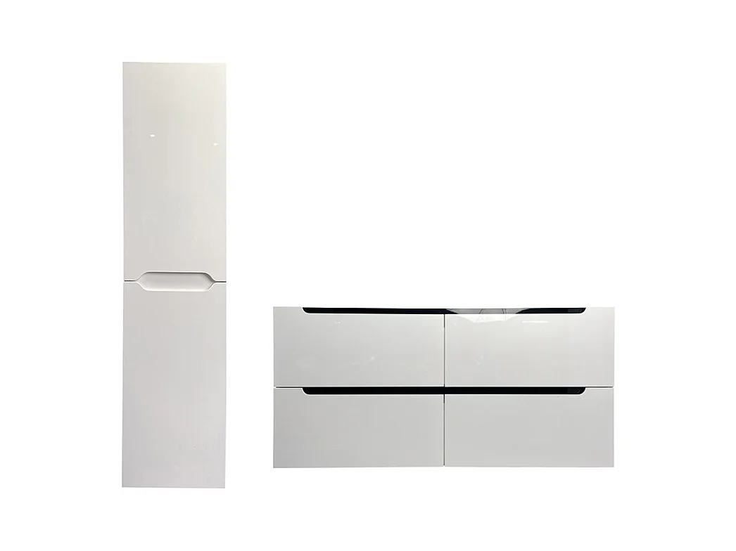 Mobile da bagno sospeso con doppio lavabo da incasso e colonna 120 cm Bianco - SELITA