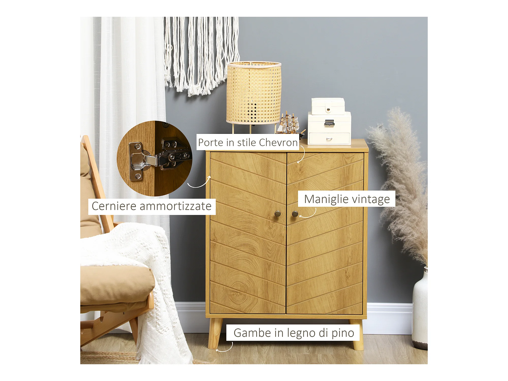 Mobile da terra Rovere affumicato 60x46x81,5 cm MDF