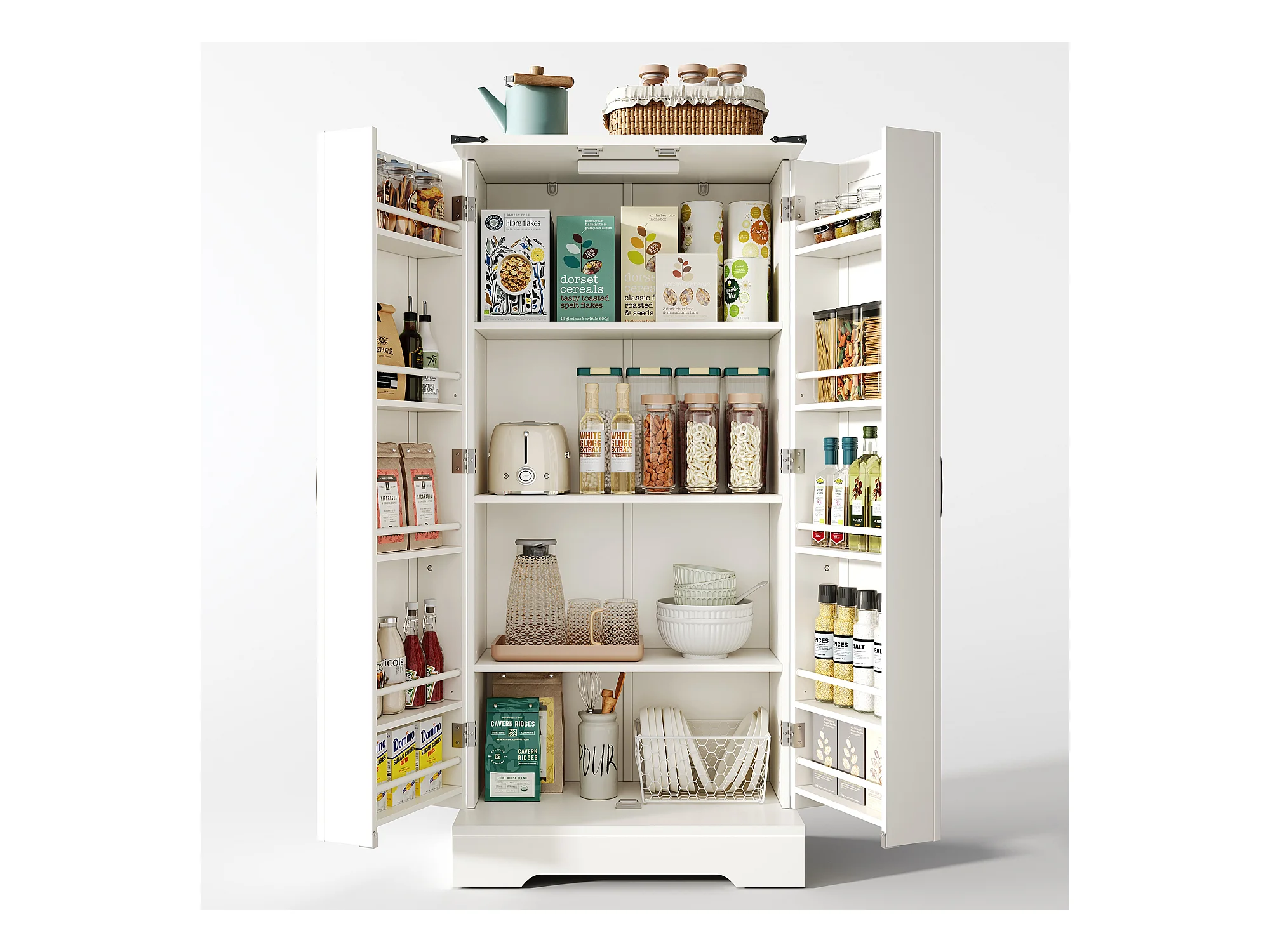 Credenza da cucina con 2 ante, 2 cassetti e ripiani - 59,5 x 45 x 200 cm - Legno MDF - Bianco
