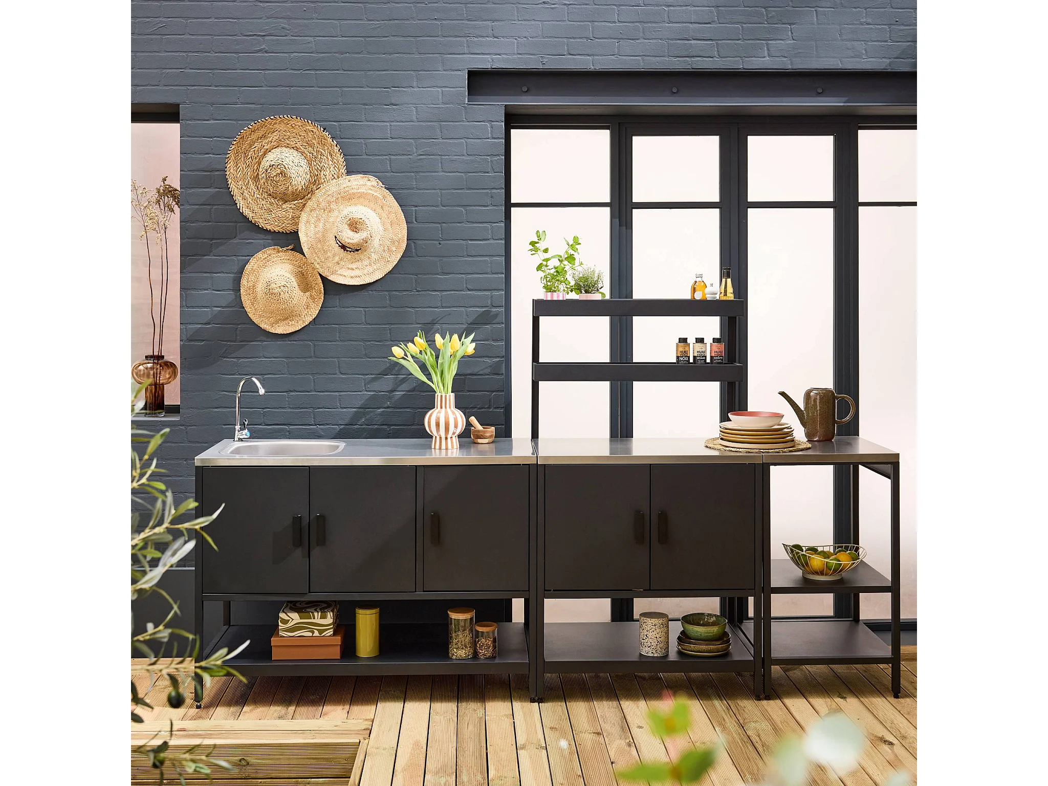 Mobile da esterno, 3 moduli in acciaio inox, nero