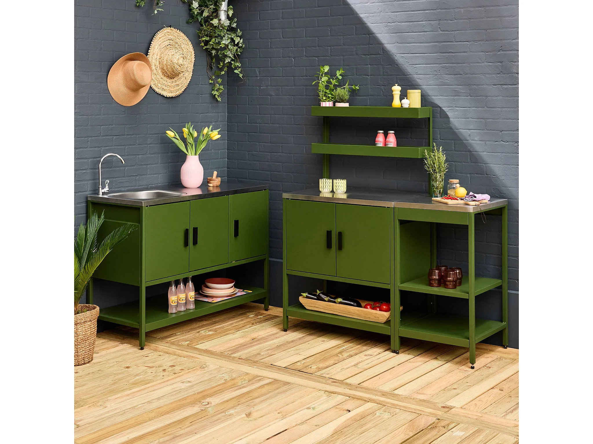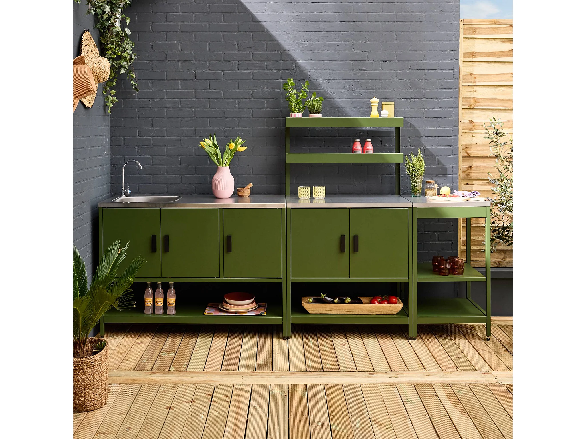 Mobile da esterno, 3 moduli in acciaio inox, verde