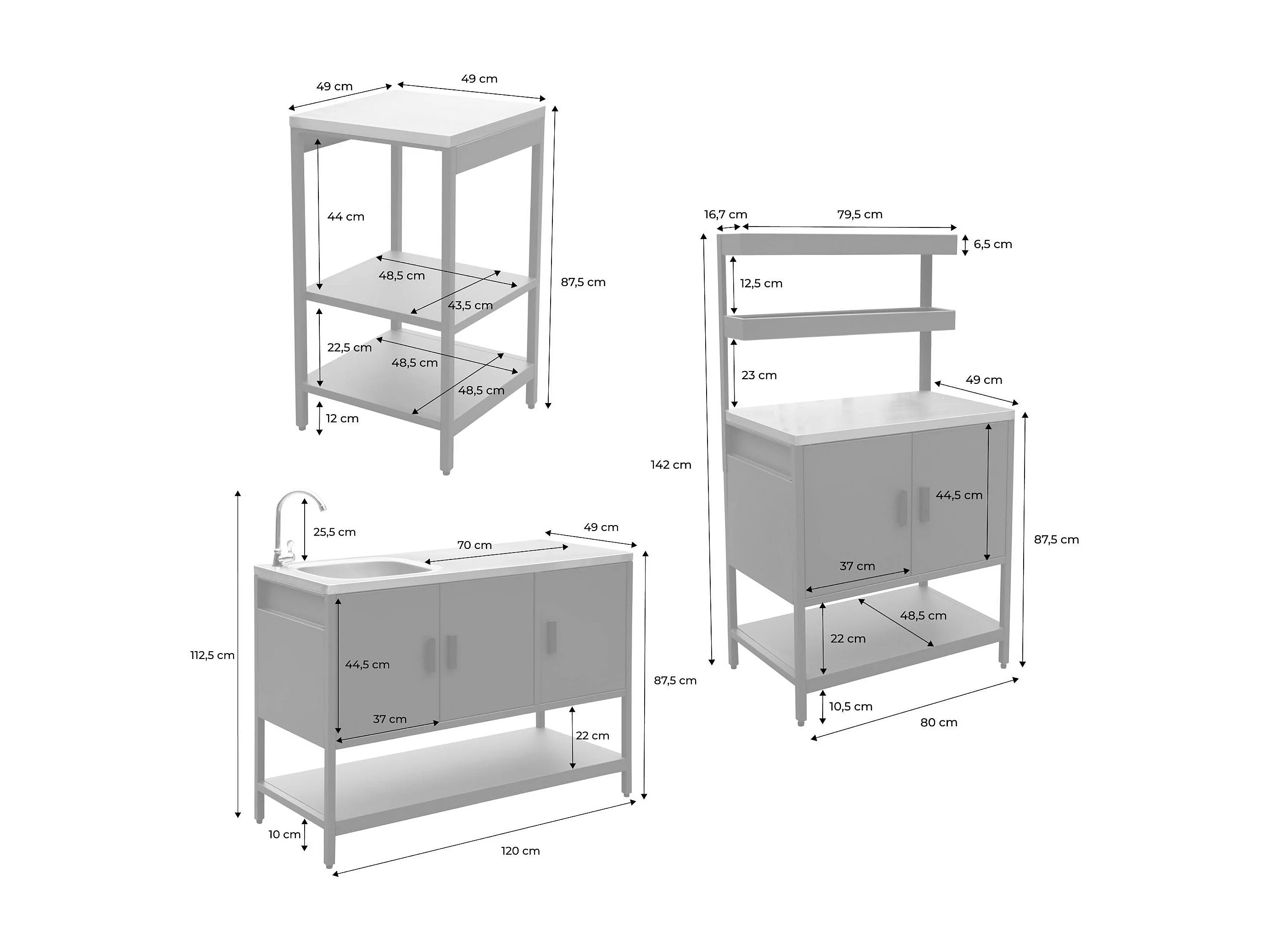 Cucina esterna acciaio inossidabile con barbecue a carbone, 3 moduli,