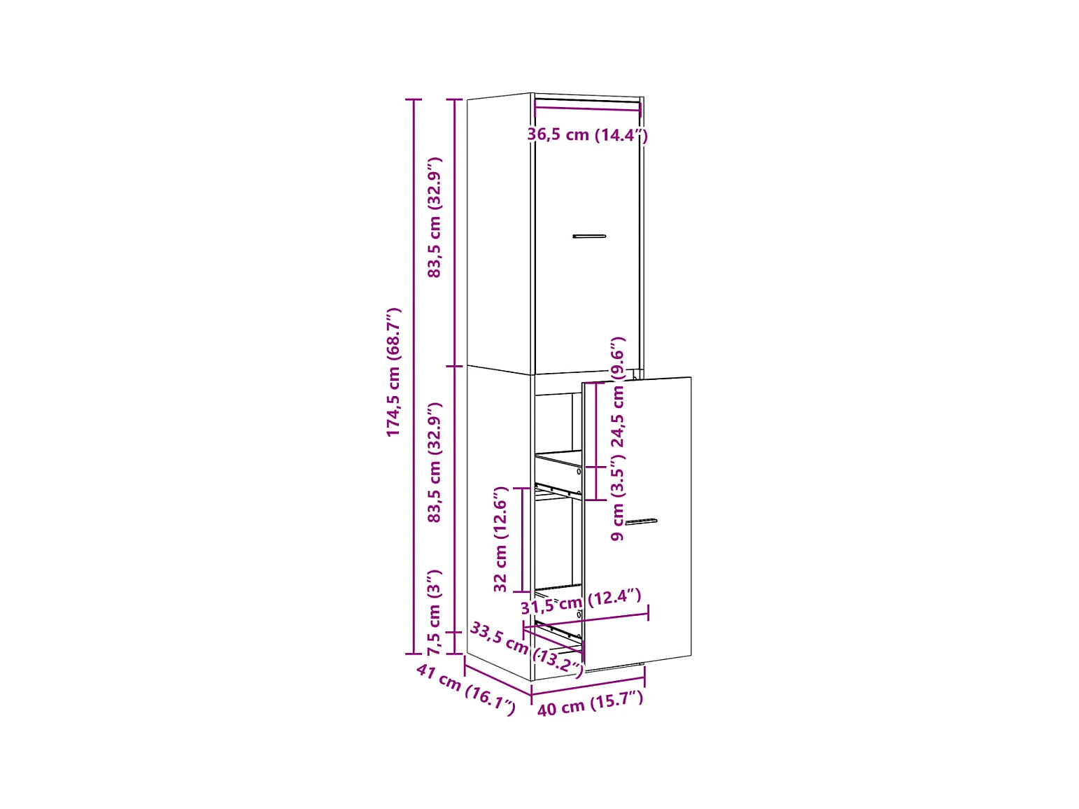Mobile da farmacia in rovere Sonoma 40x41x118 cm in derivati del legno