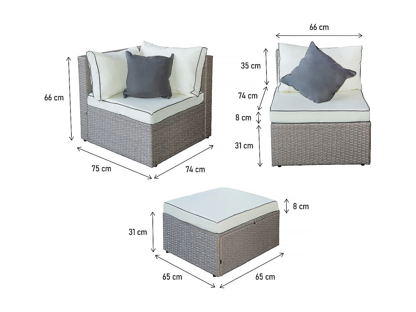 Mobile da giardino basso in resina intrecciata "Kuba" - Grigio
