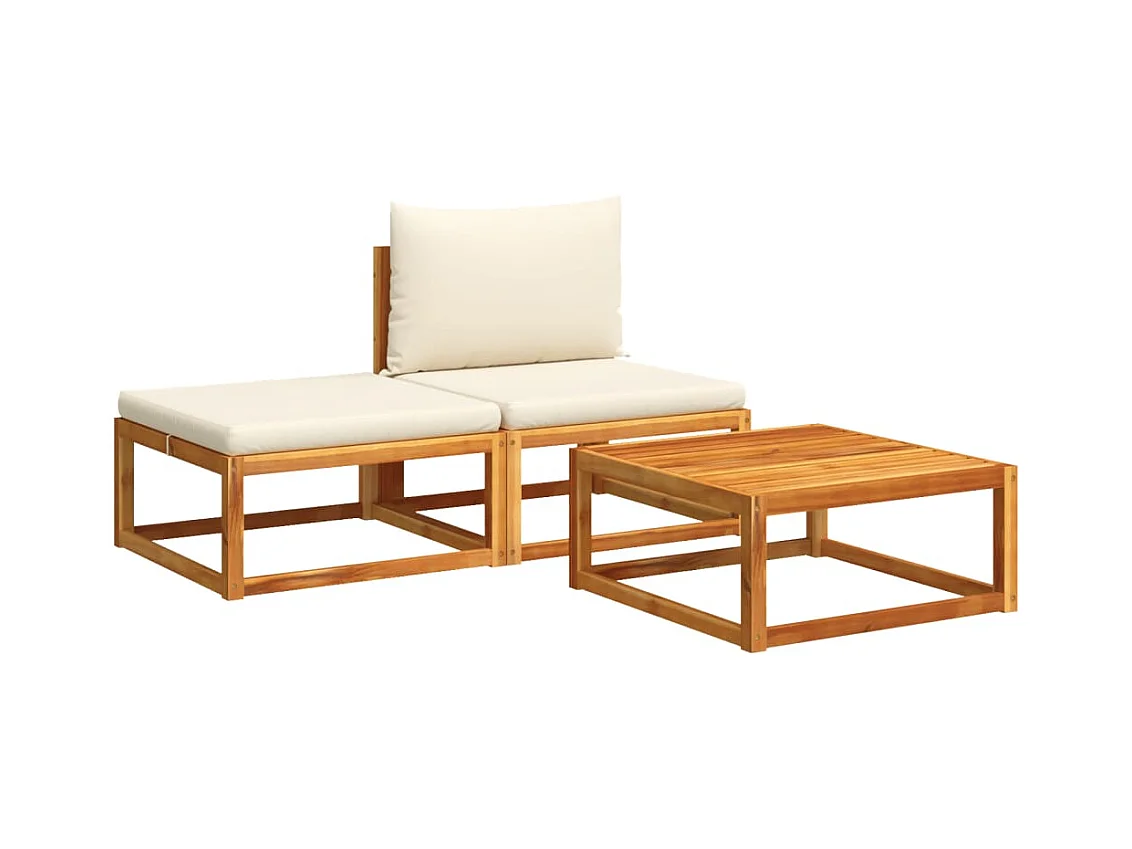 Mobile da giardino con 3 cuscini in legno massello di acacia