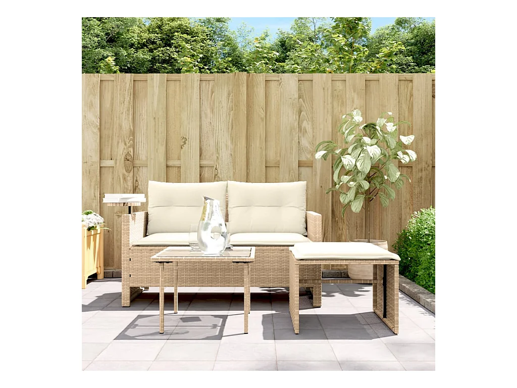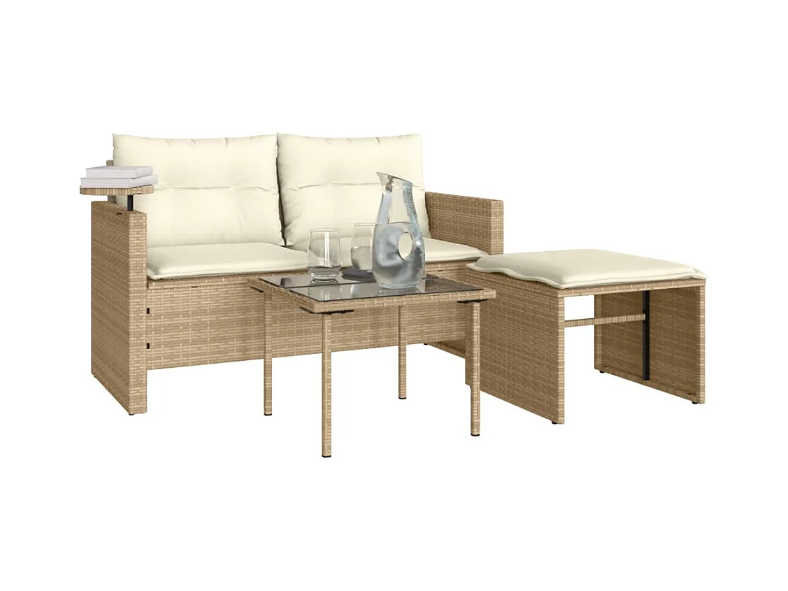 Mobile da giardino con cuscini 3 pz in resina intrecciata beige