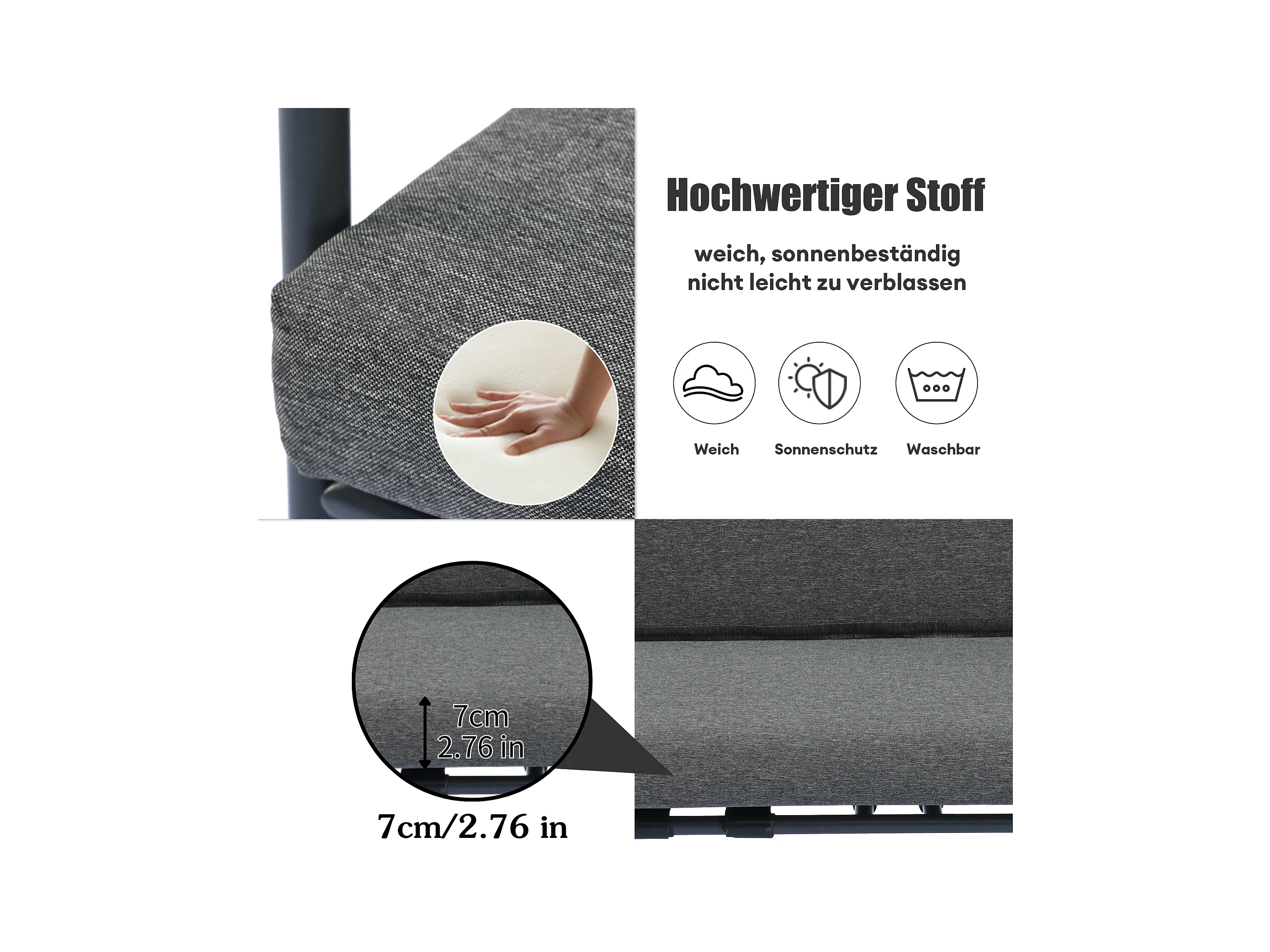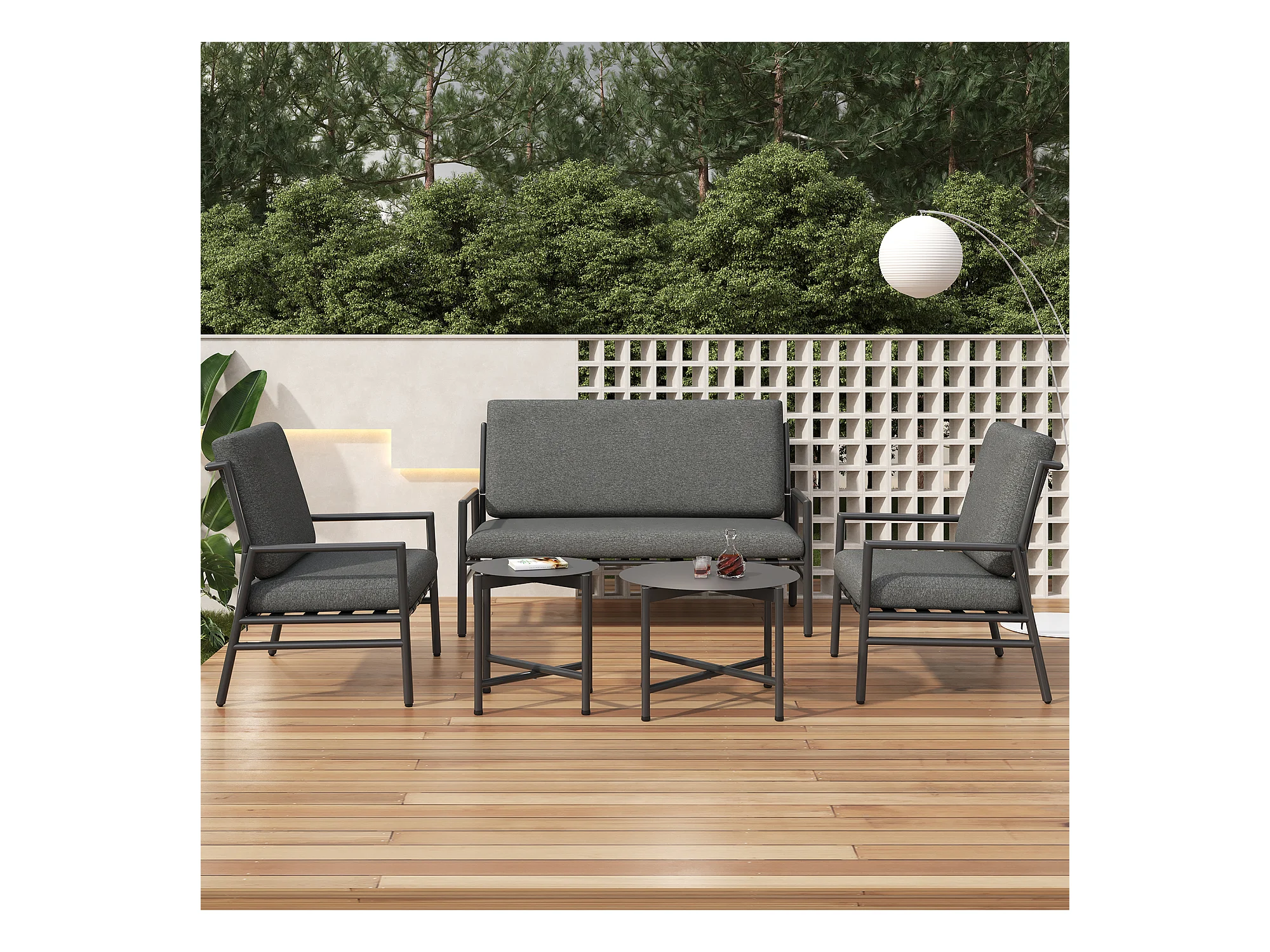 Set di mobili da giardino in acciaio zincato a 4 posti: 1 divano + 2 sedie + 2 tavolini rotondi - 6 cuscini per seduta e schienale - Grigio